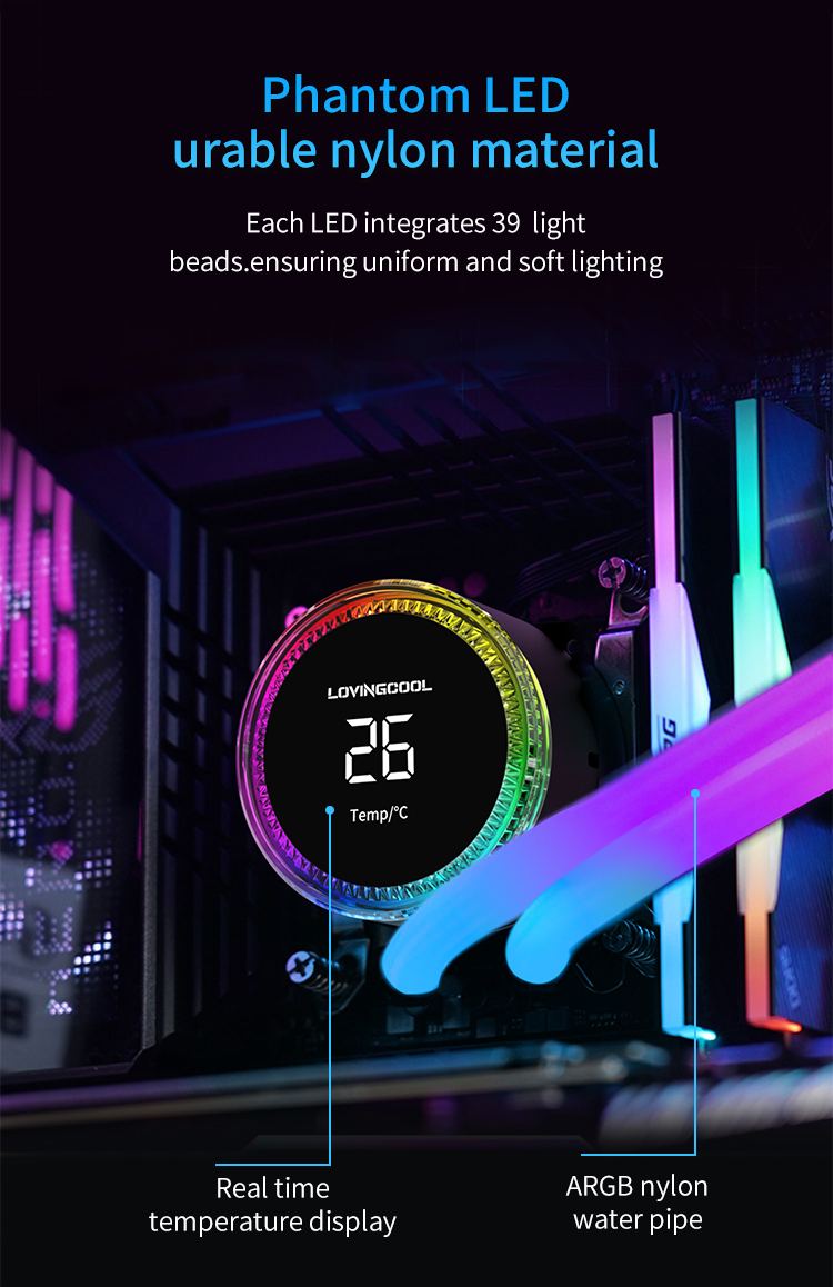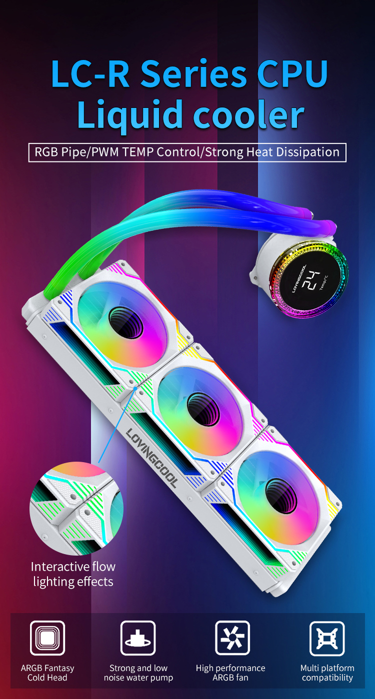 240mm RGB Liquid CPU Cooler with Copper Heatsink Temperature Display Screen LCD 12V Rated Air Type Water Cooling