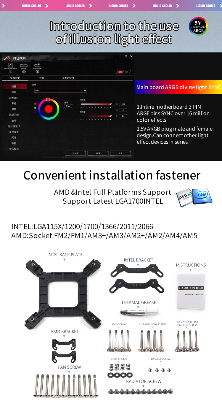 240 White ARGB CPU Liquid Cooler 5V 3PIN CPU Fan Integrated Water Cooling Radiator with Video Playback Water Pump