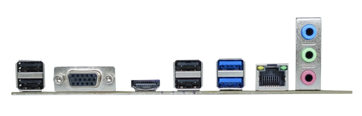 1xPS/2 keyboard port,1xPS/2 mouse port 2xUSB2.0 ,2xUSB 3.0 1x VGA port 1x HDMI port 1x RJ45 port 1x 3-in-1 Audio port(line in/line out/MIC in) |