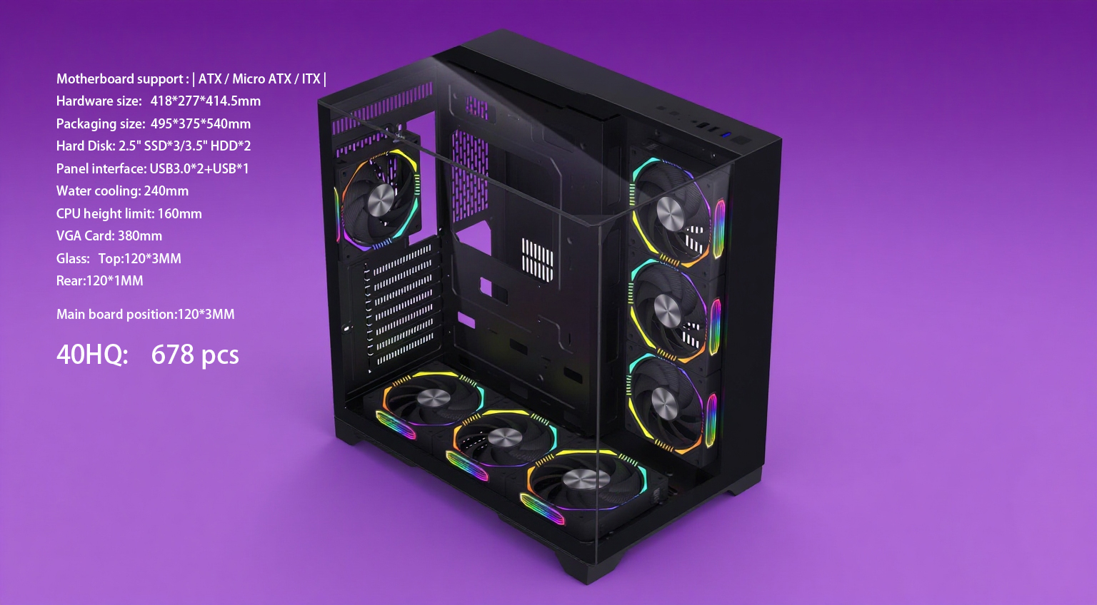 Factory Wholesale New Styles Pc Case Full-View Tempered Glass Panel ATX PC Gaming Case with for Gamers