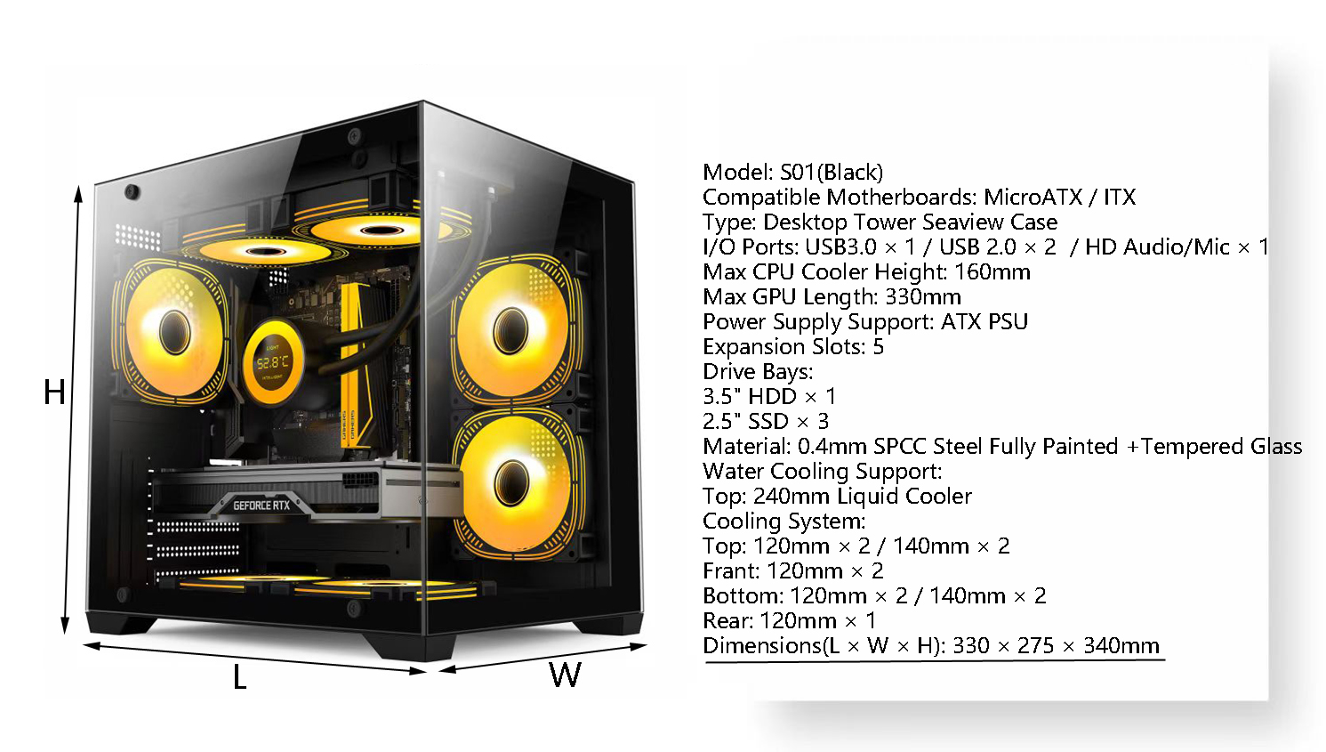 Micro Gaming Pc Case Atx Computer Game Case Mid Tower 3.0 Usb Cabinet Dustproof Gaming Computer Case Black