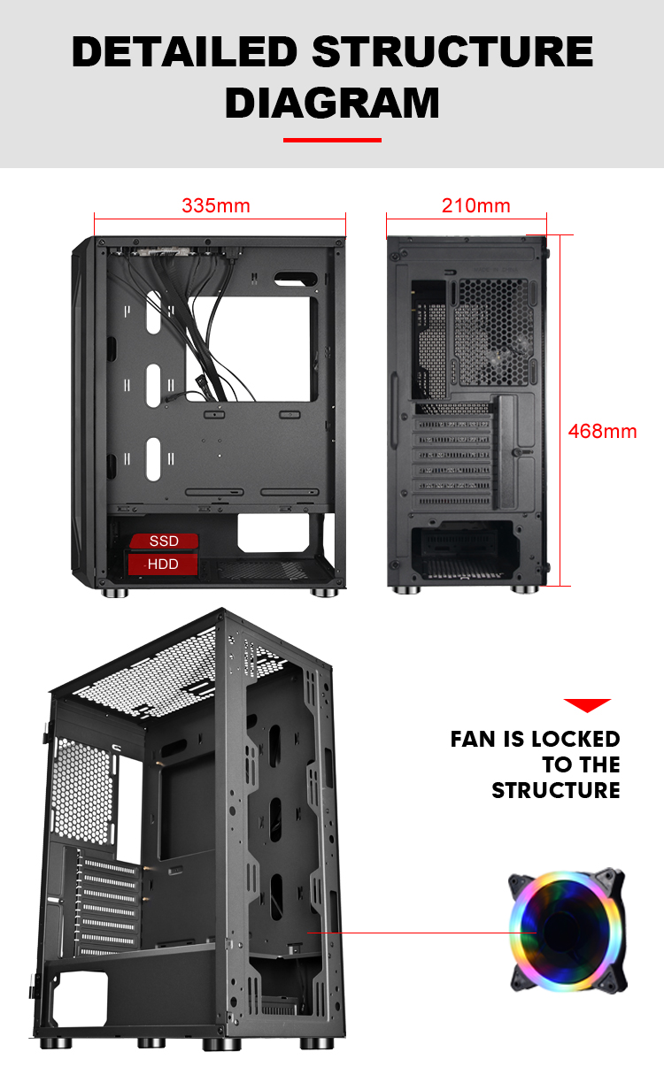 Newly Designed PC Cabinet OEM Gaming Computer Cases Towers Tempered Glass Gaming PC Case