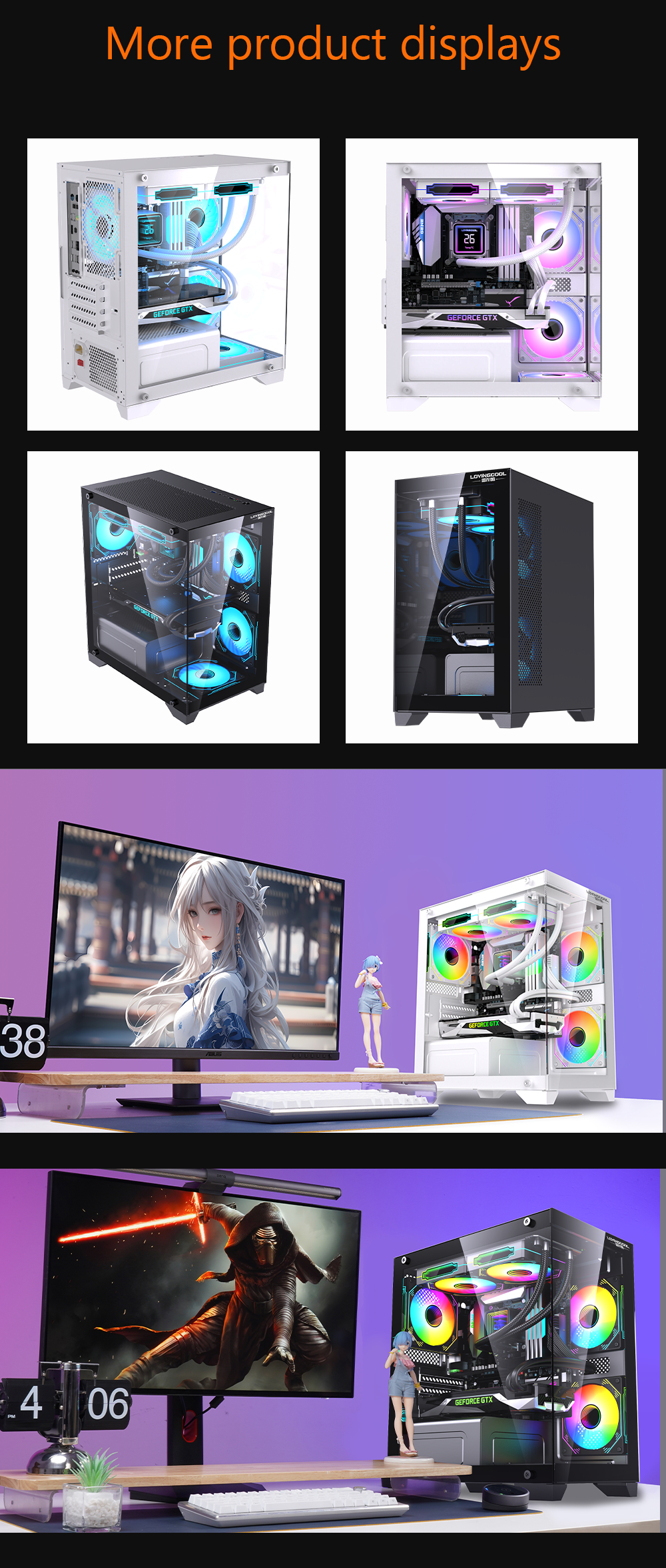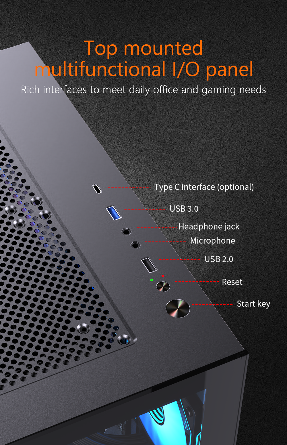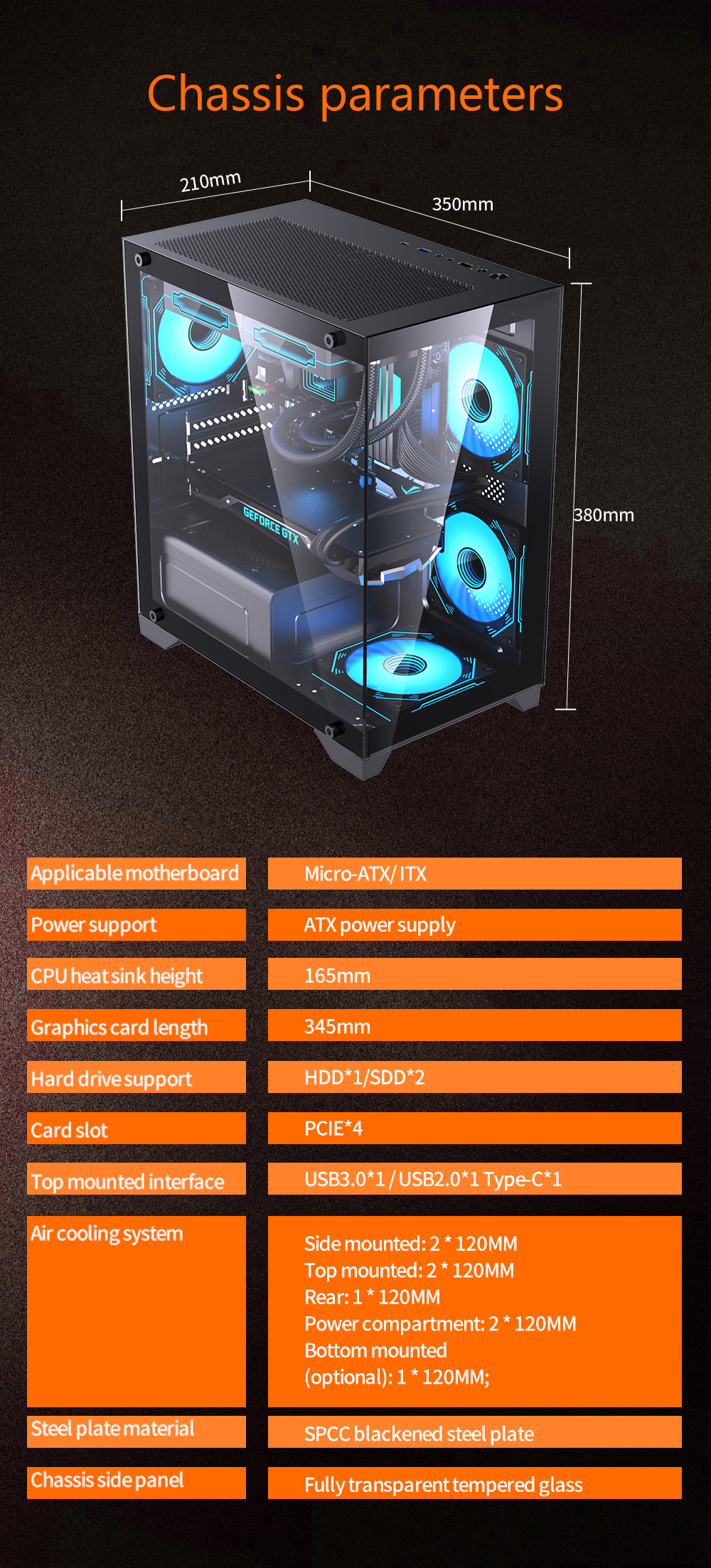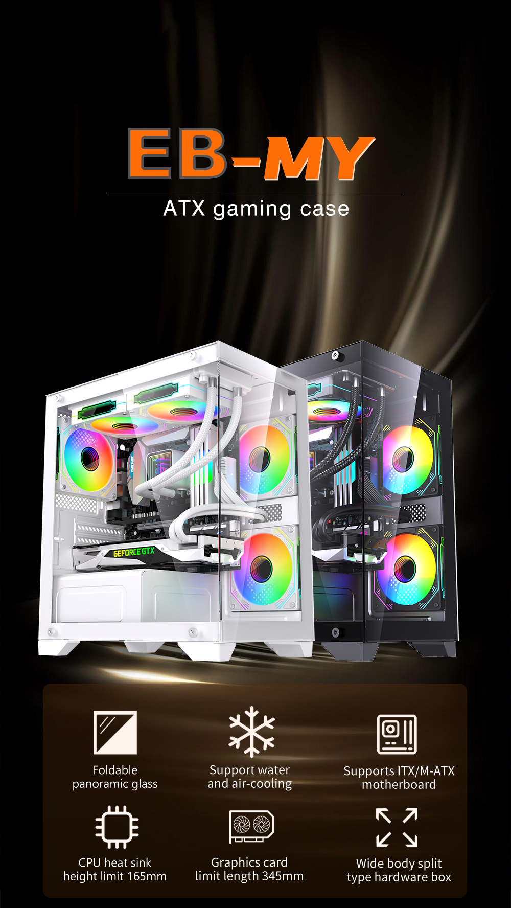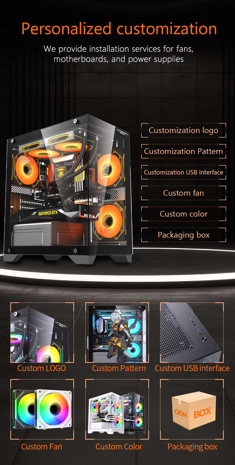 OEM Custom Logo Gaming PC Case RGB Cooler CPU Cabinet Mid Tower MATX ITX Computer Desktop Chassis with PC Fans