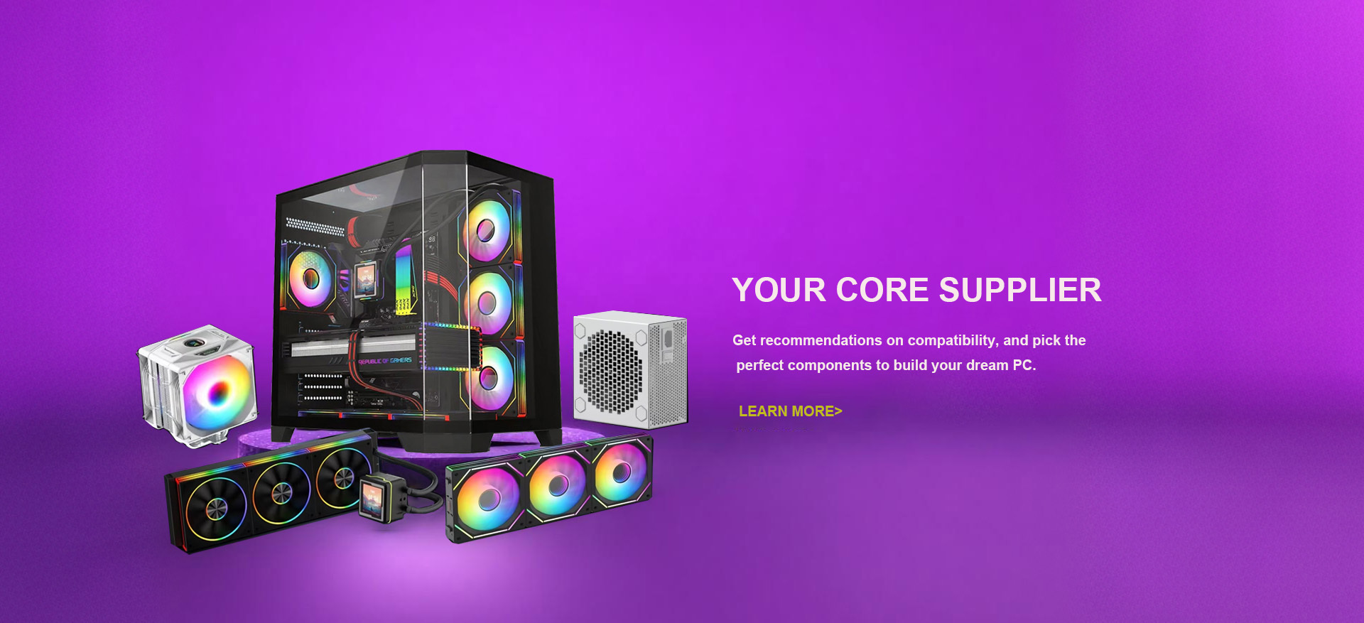 SEE MORE Case fan,CPU fan,water cooling fan,computer case,power supply,montherboard,mouse and keyboard,display screen,other accessories.etc
