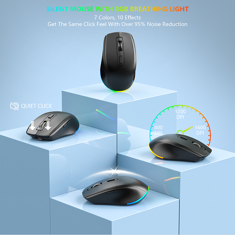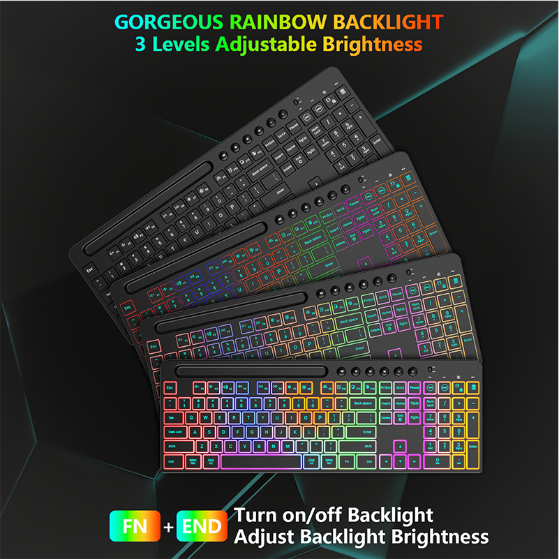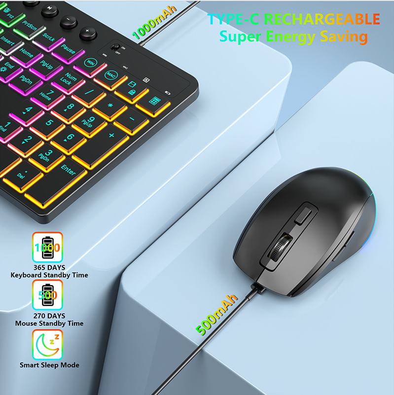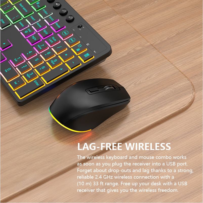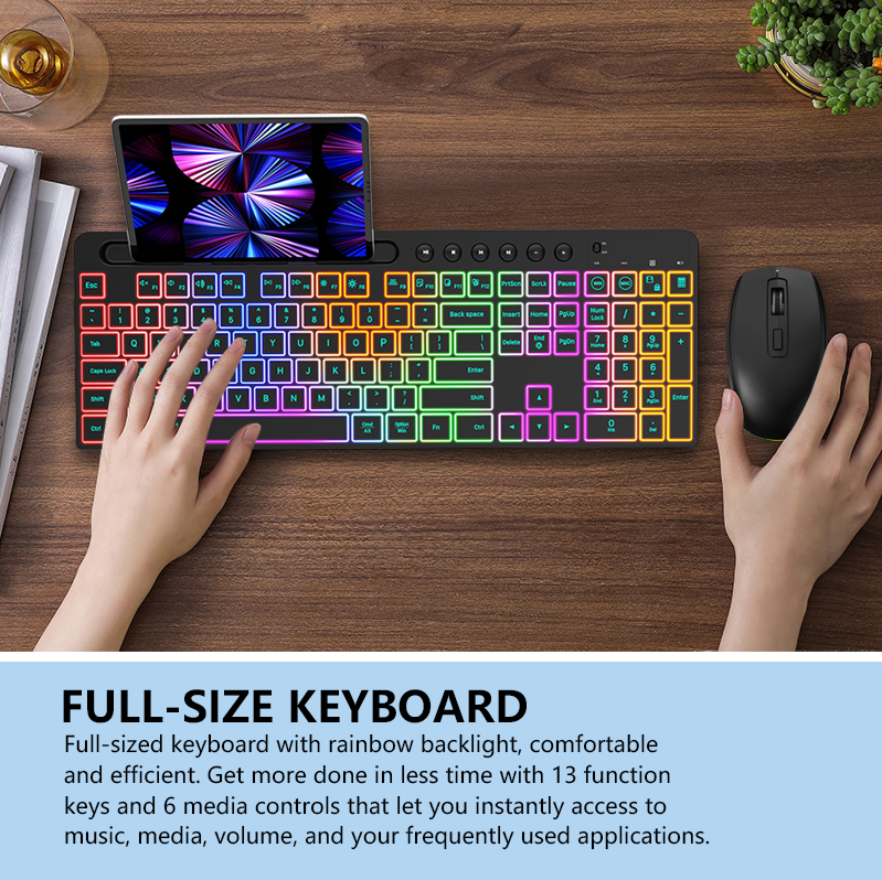 114 Keys 2.4G Wireless Keyboard and Mouse for Computer RGB Silent Cordless Membrane Keyboard Set for Mobile Phone Tablet