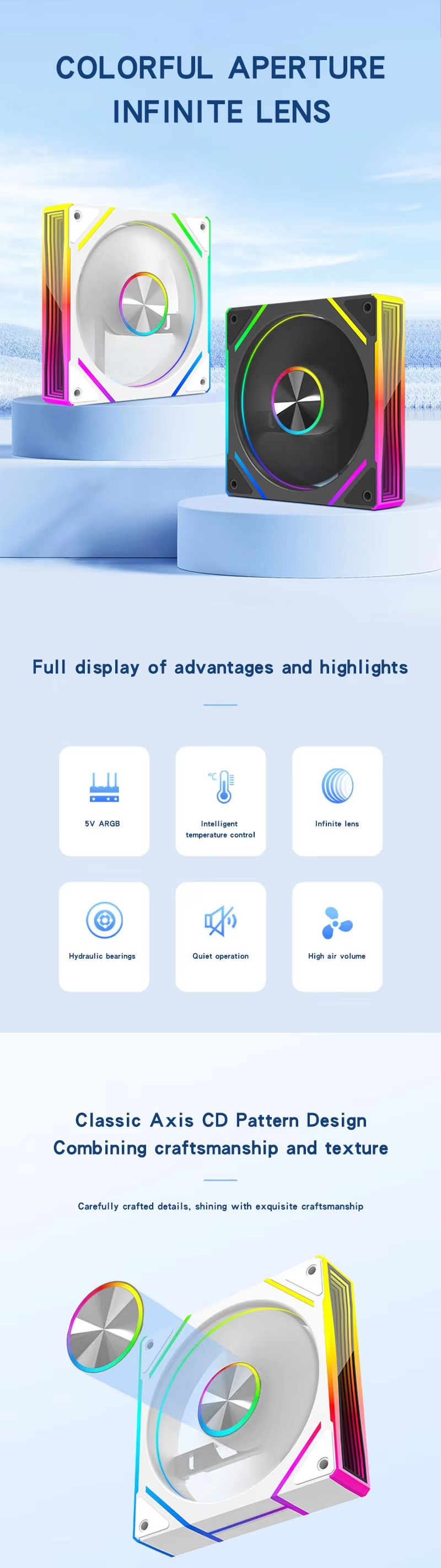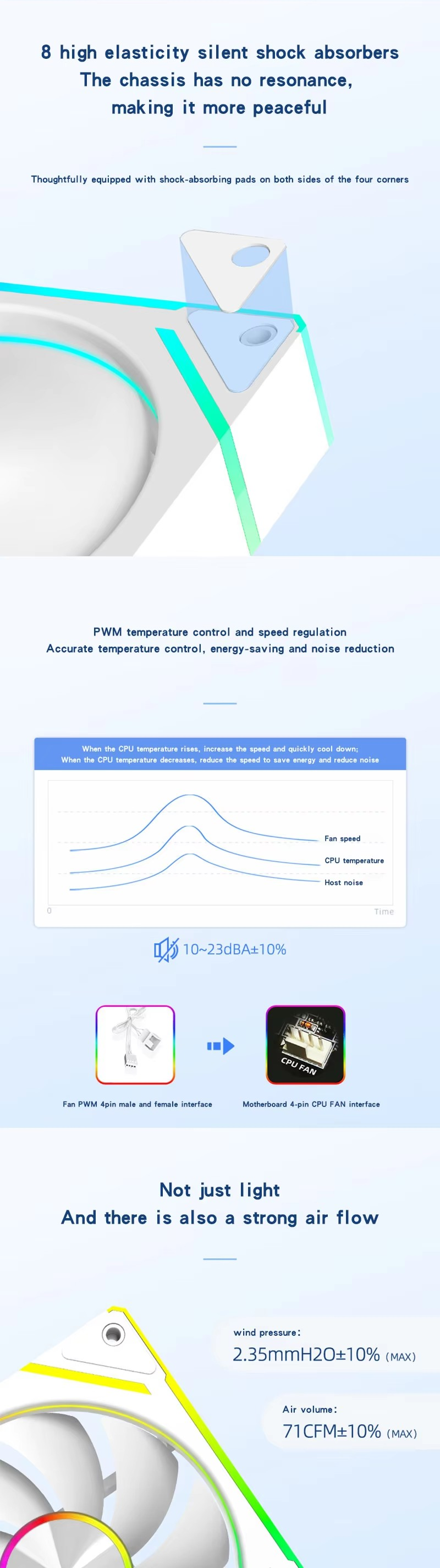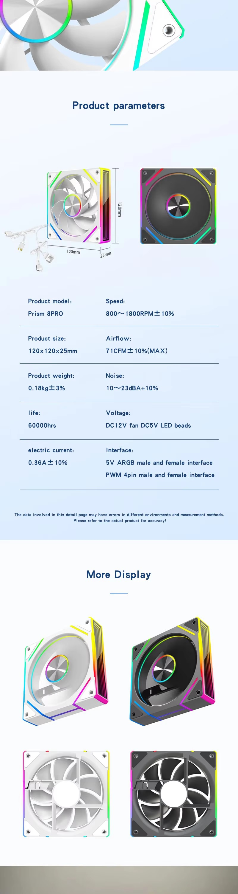 8PRO 12CM RGB Temperature-Controlled PWM Silent Fan High Airflow 5V 3-Pin ARGB Sync High-Rated CPU Cooling Case for PC