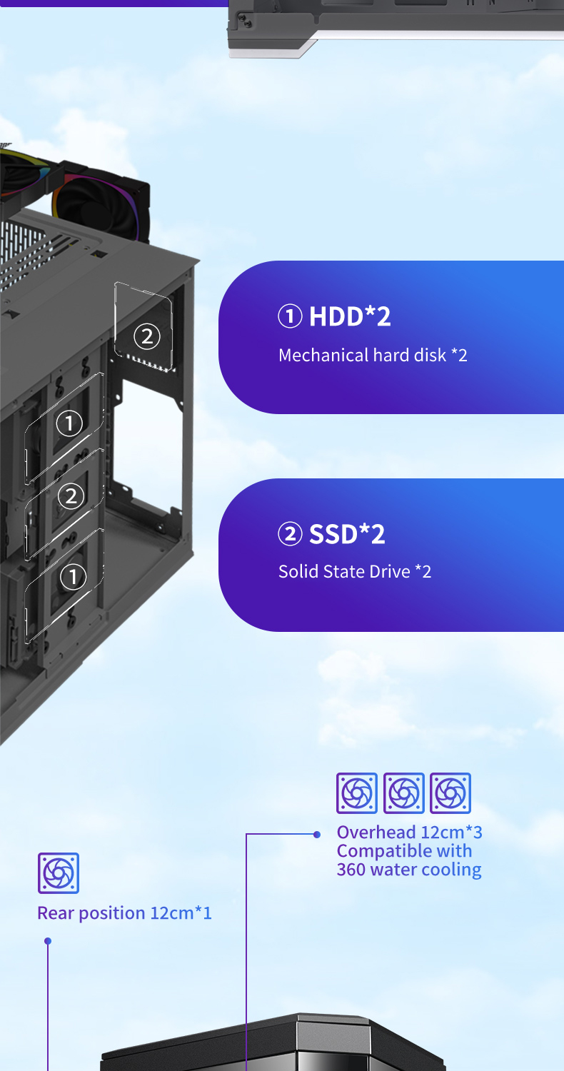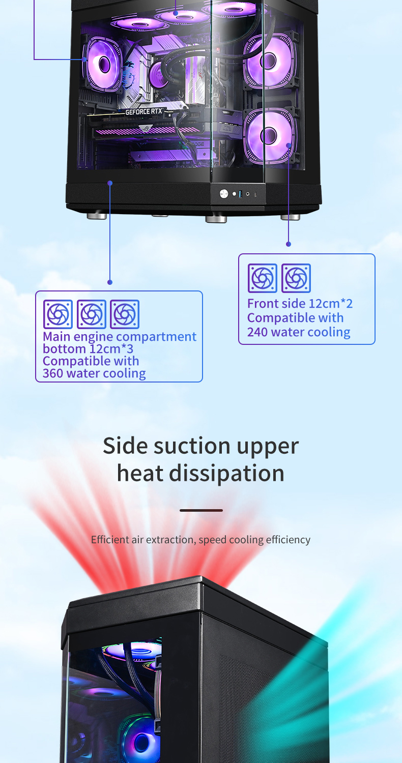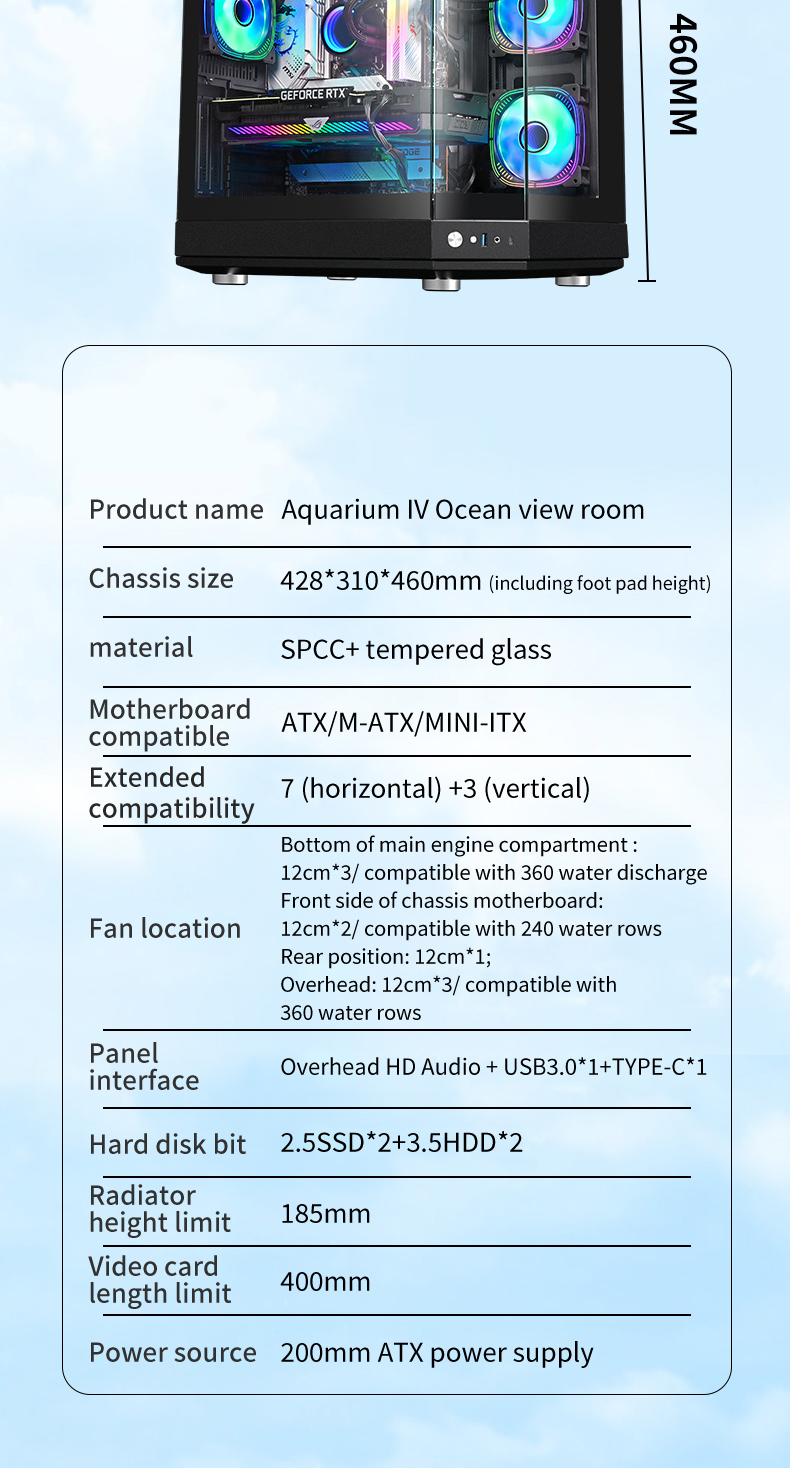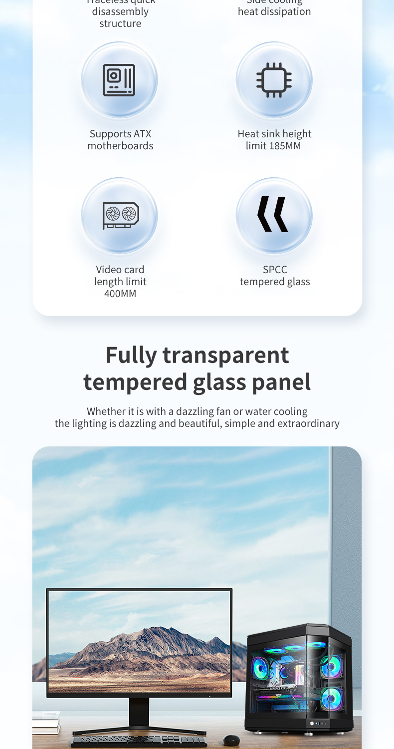 ATX Game Case PC Tempered Glass Full View Gaming case Full Tower 360mm Water Cpu Cooler Computer Cases & Towers