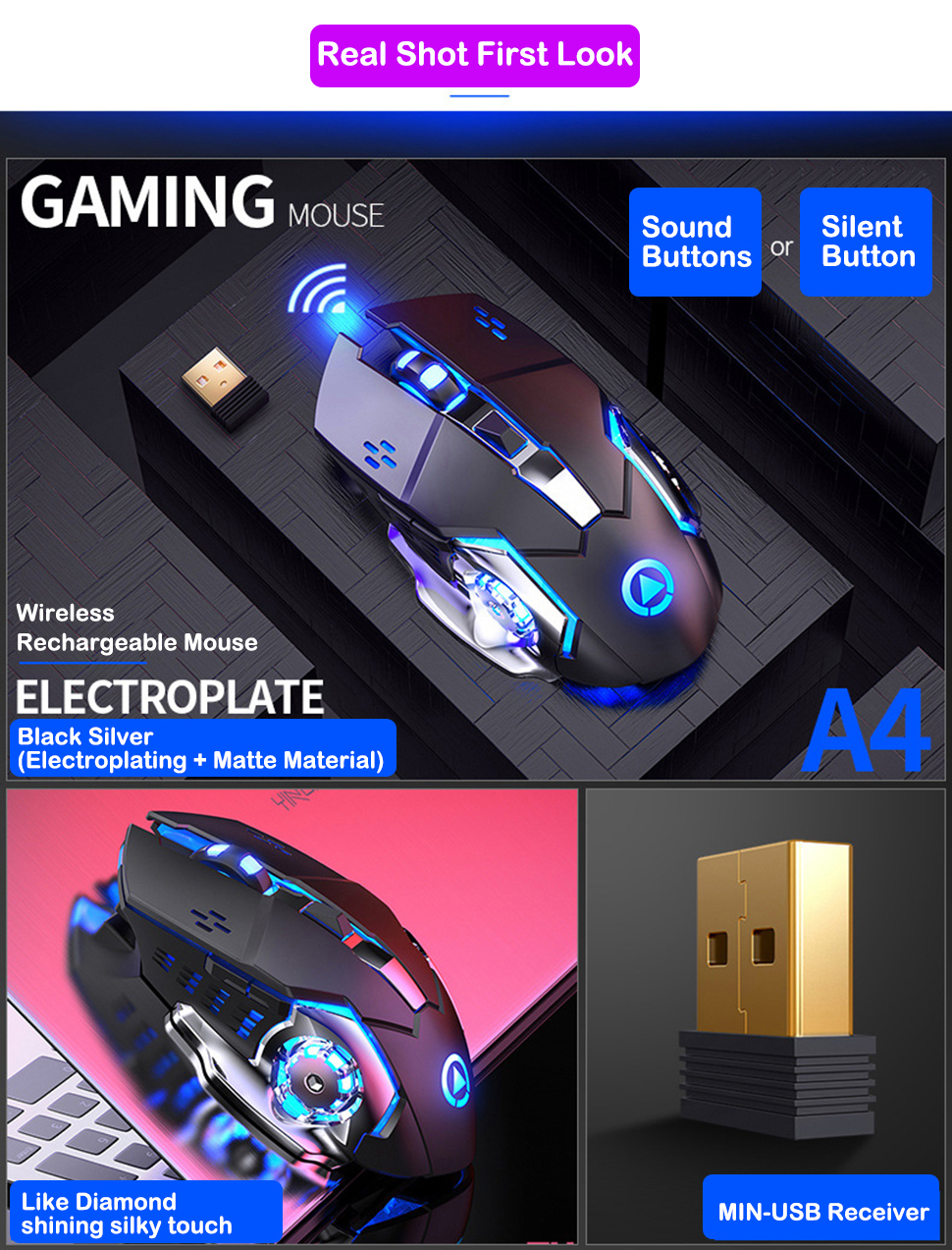 Cheap gaming mouse LED light PC desktop computer universal USB wireless optical LED backlit gaming mouse