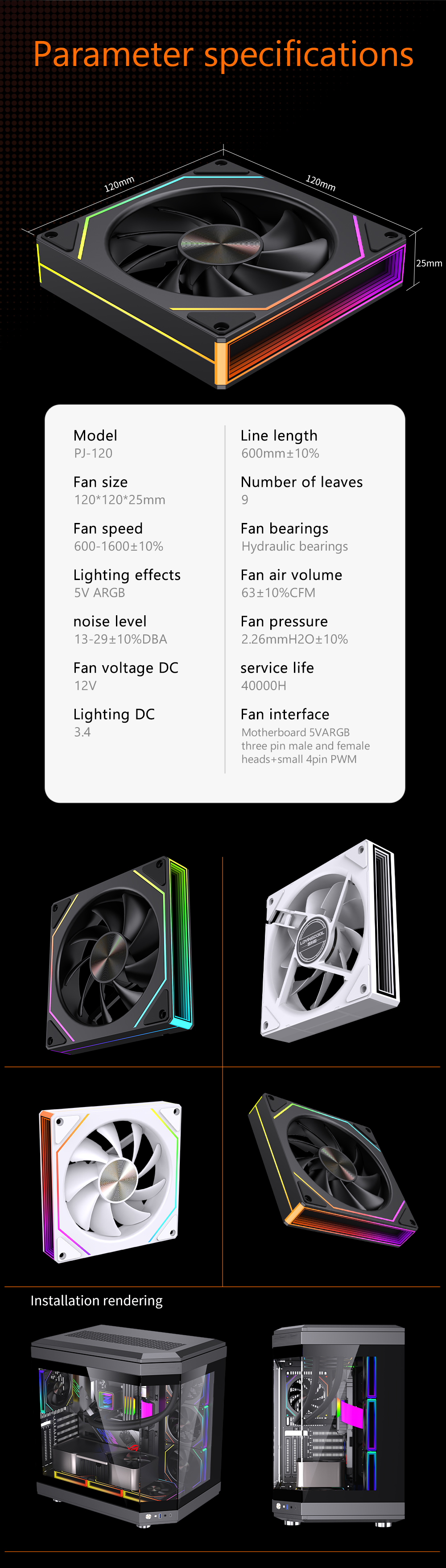 Cooler Fan RGB LED Low Noise CPU Cooling Fan PC Computer Case Heatsink 4pin Remote Hot Sale 12V Plastic RGB Fan