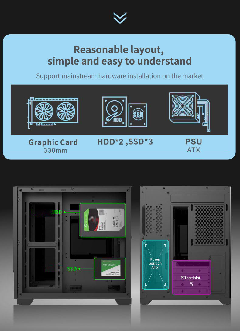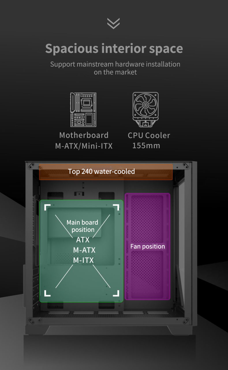 2024 Custom USB3.0 high-quanlity gaming case atx mid tower pc gamer cabinet support 240mm cpu liquid cooler