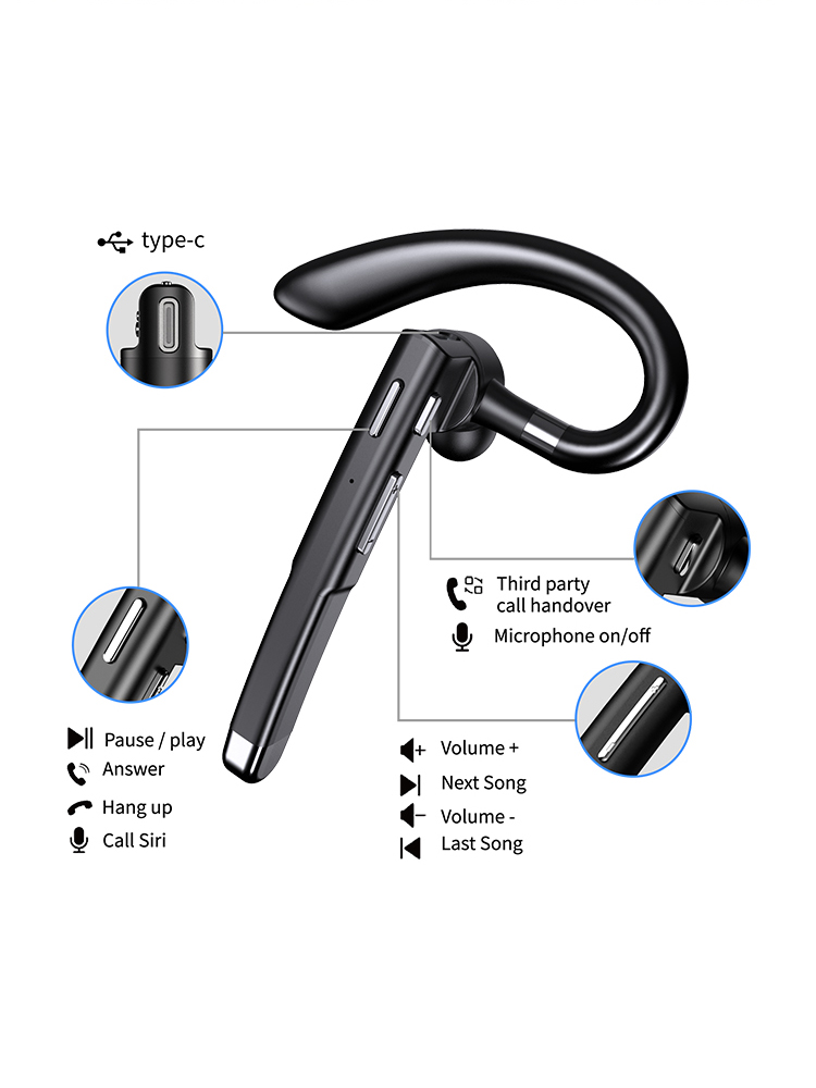 Earphone Bt 5.0 Wireless Headset Hanging Earhook Earphones Waterproof Sports Stereo Earbud Headset with Mic