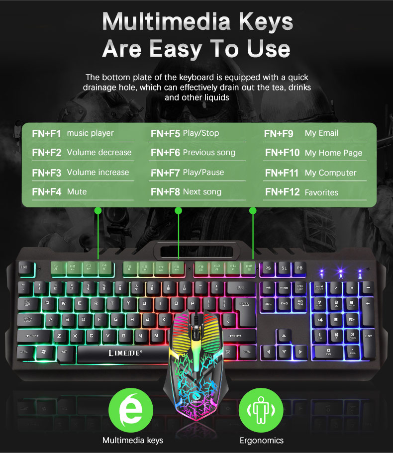 Facoty Directly Sell Gaming Keyboard and Mouse Combo Waterproof RGB Led Backlight Ergonomic Design With USB Receiver For Gamer