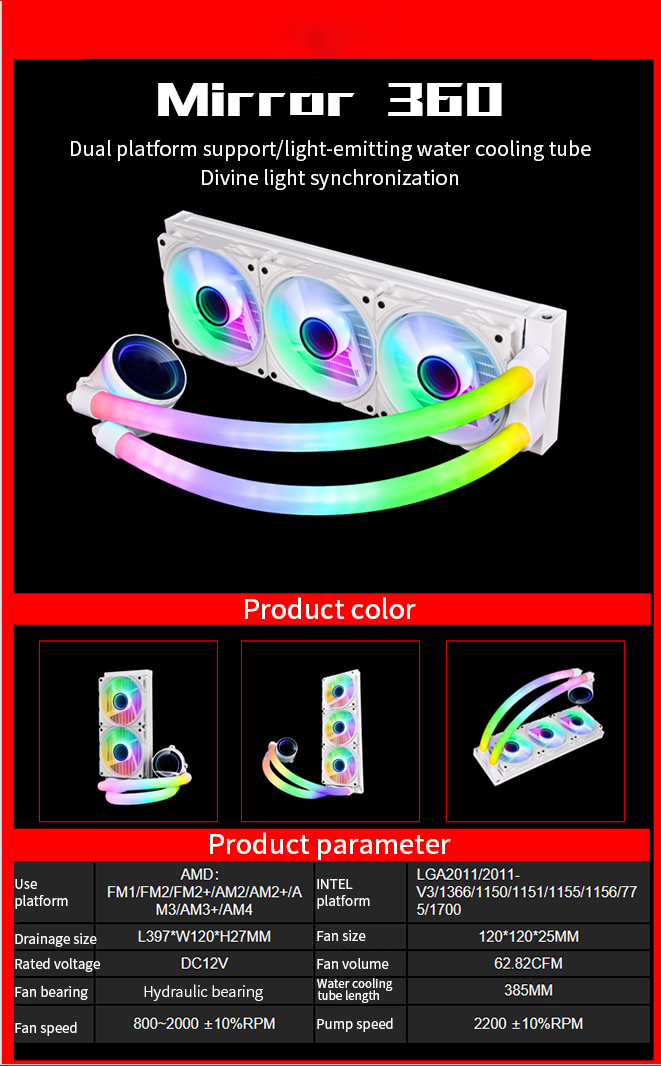 Factory Customized 360mm CPU Water Cooling with 5V ARGB PWM Cooling Liquid Aio Cooler Heatsink Cpu Copper Cooling Radiator 240