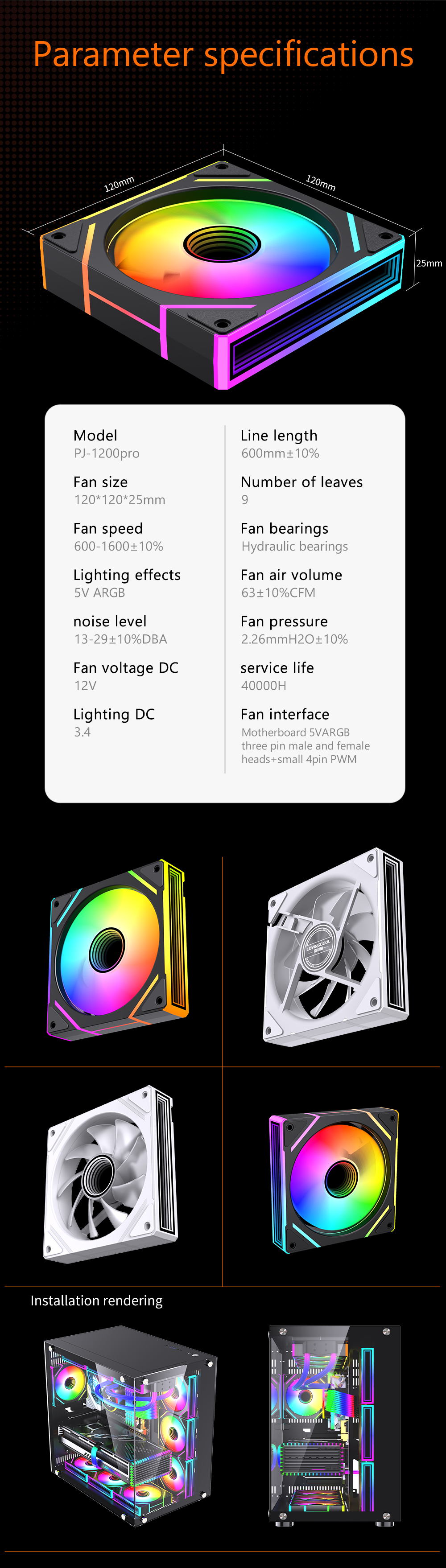 Factory Hpt Sale Silent High Airflow 5V 12V 120mm RGB Computer Case PC Cooling Fan Air Cooler for PC Gaming