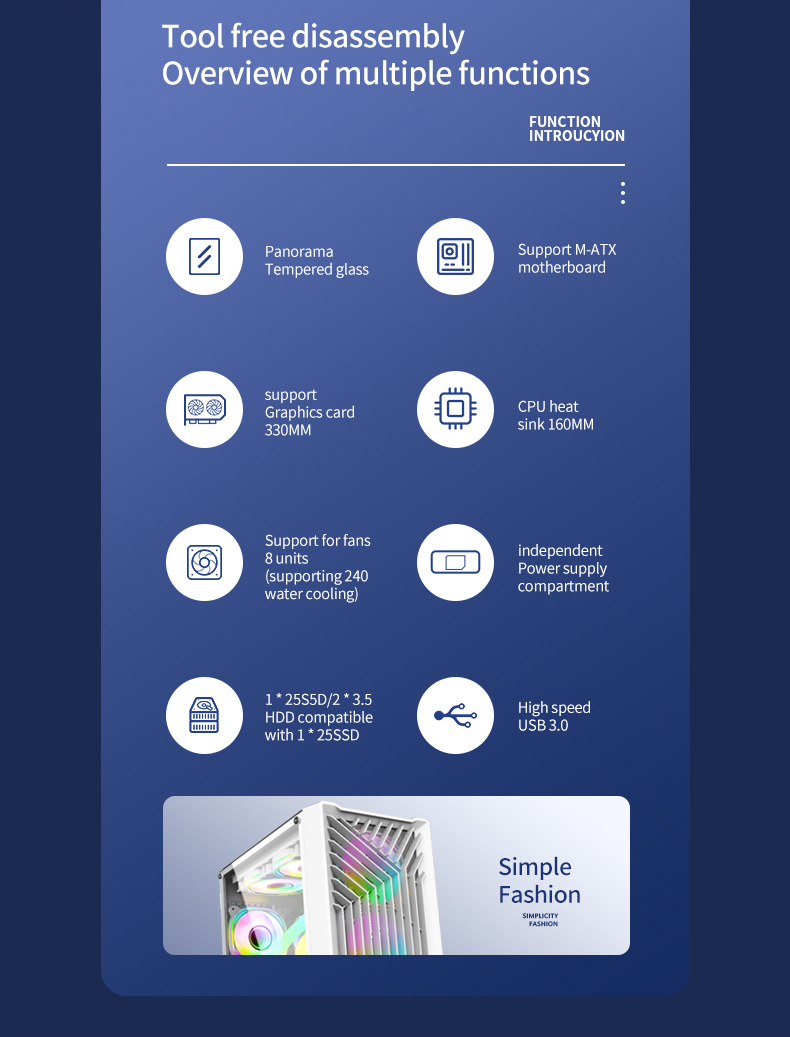 Fast Delivery Customized OEM PC Case ATX case Tempered PC Gaming Hardware Gaming Computer Case PC Towers