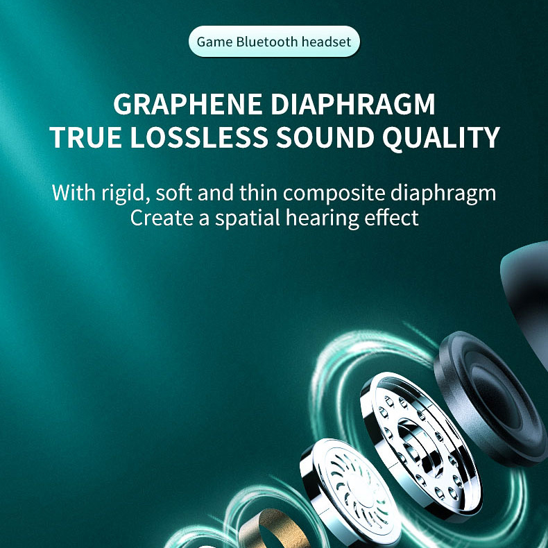 Game Mode True Wireless Earphones Low Latency Cool LED Light HD Voice Stereo Sound Sports Waterproof Headphones Earbuds
