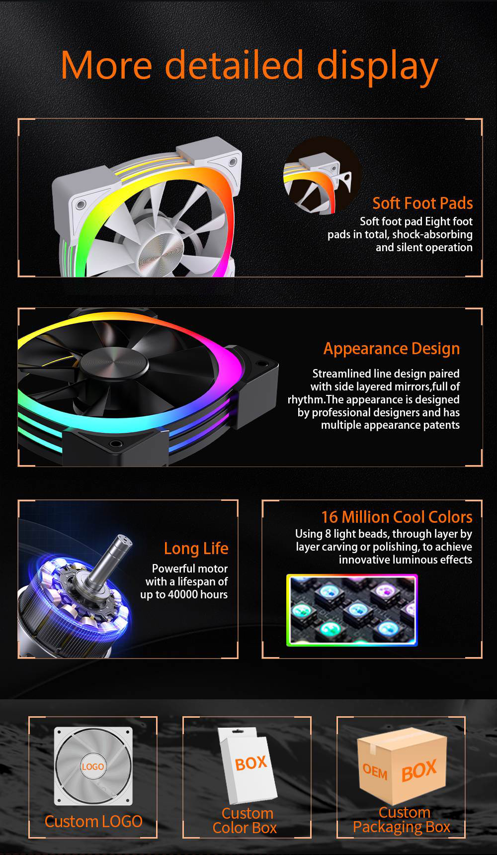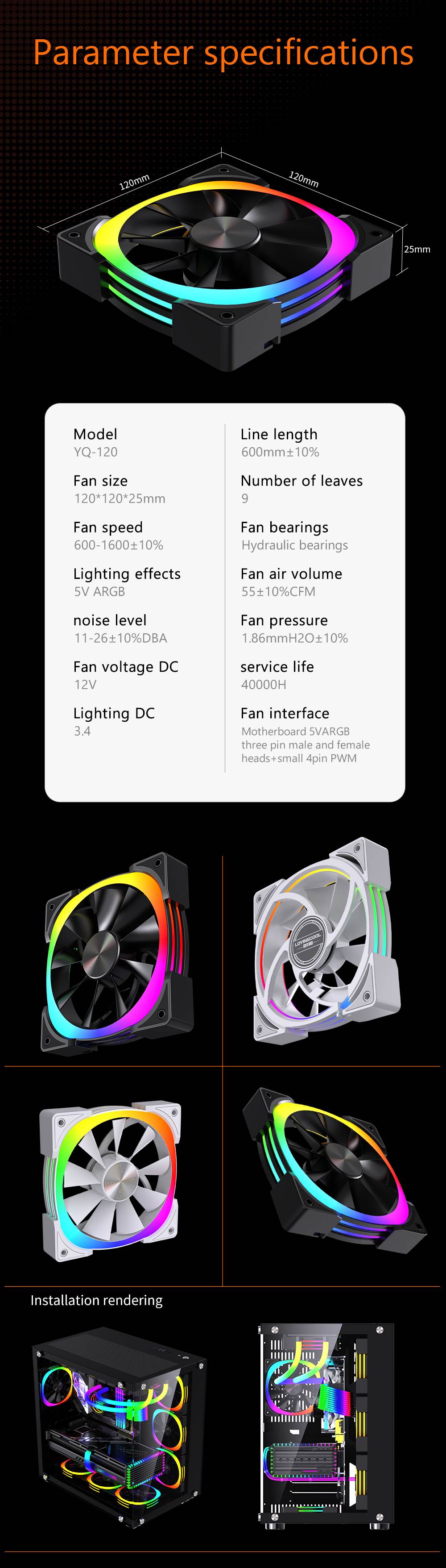 High Quality Factory Direct Sale 4Pin 120mm Cooling Fans for PC ARGB Gaming PC Fan Low Noise Computer Case Fan