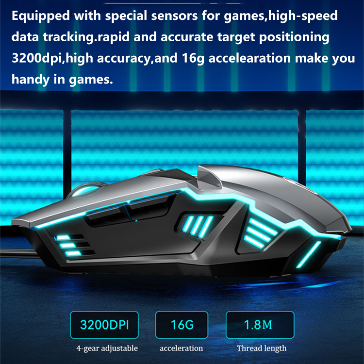 Hot Selling Custom Mech Gaming Mouse 1.8M Cable Long Computer Games USB Desktop Office Computer Games Mouse Gamer