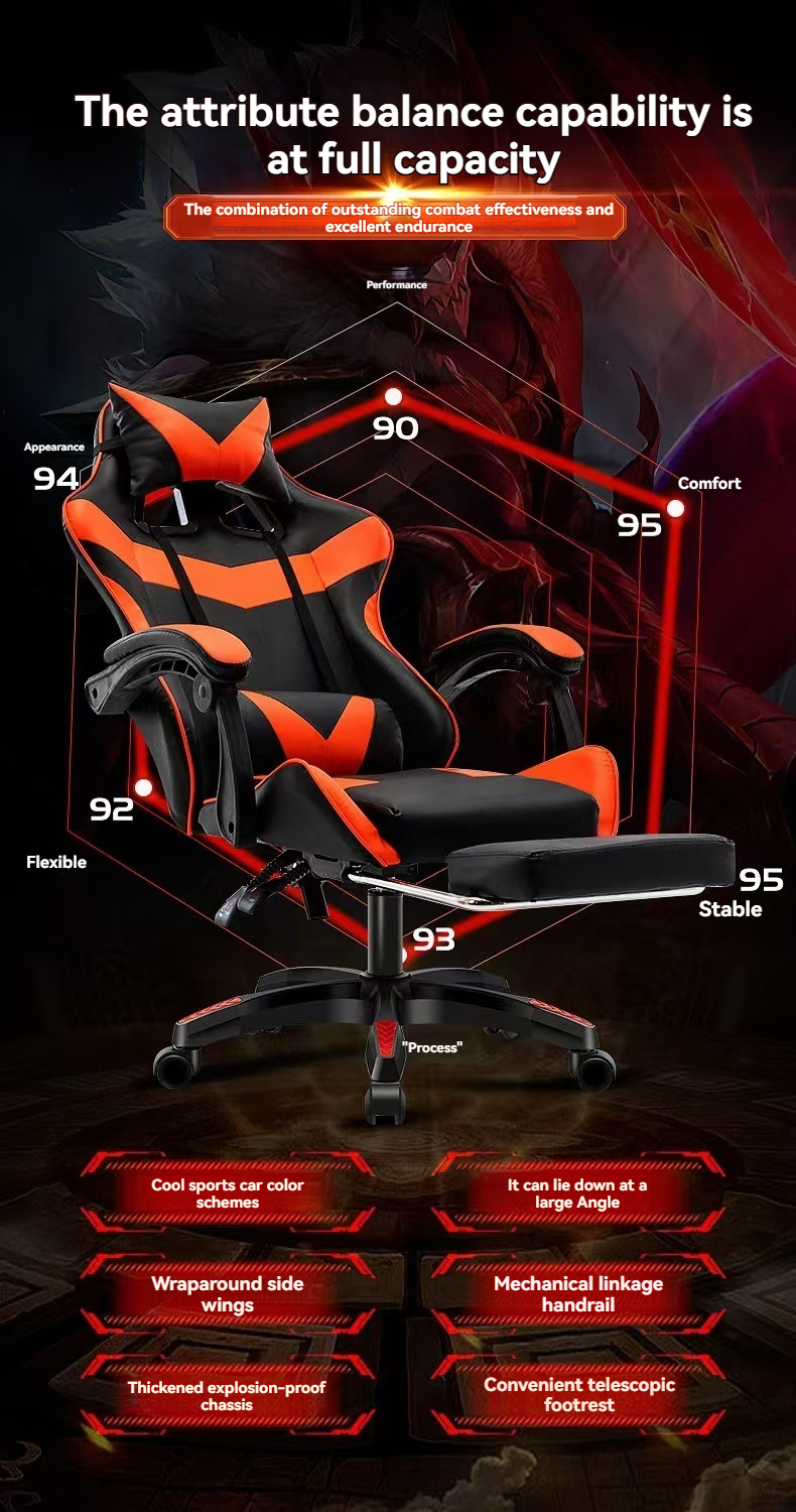 Lift Breathable Stainless Steel Modern Ergonomic Computer Desk Chair Comfortable Leather Home Gaming Chairs
