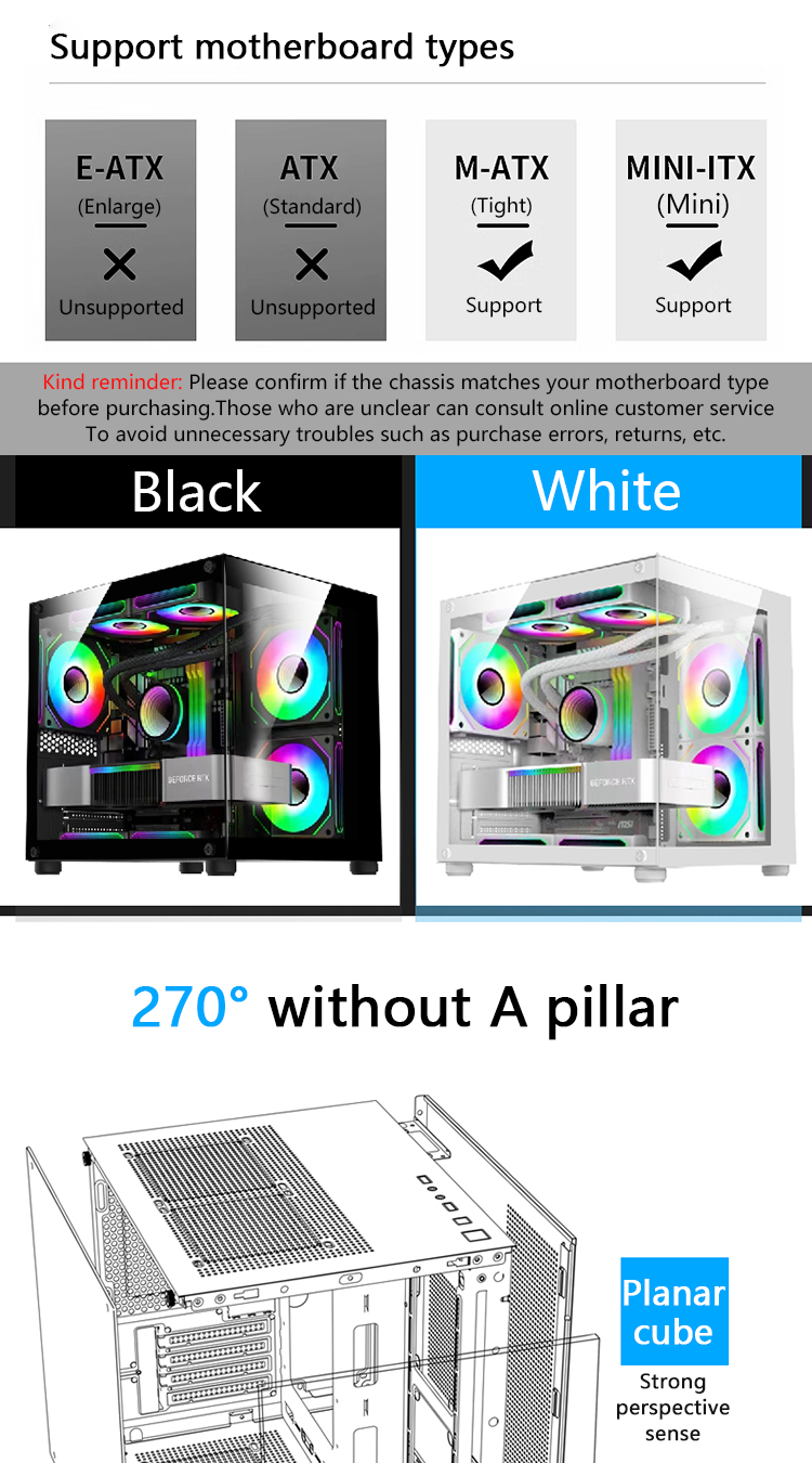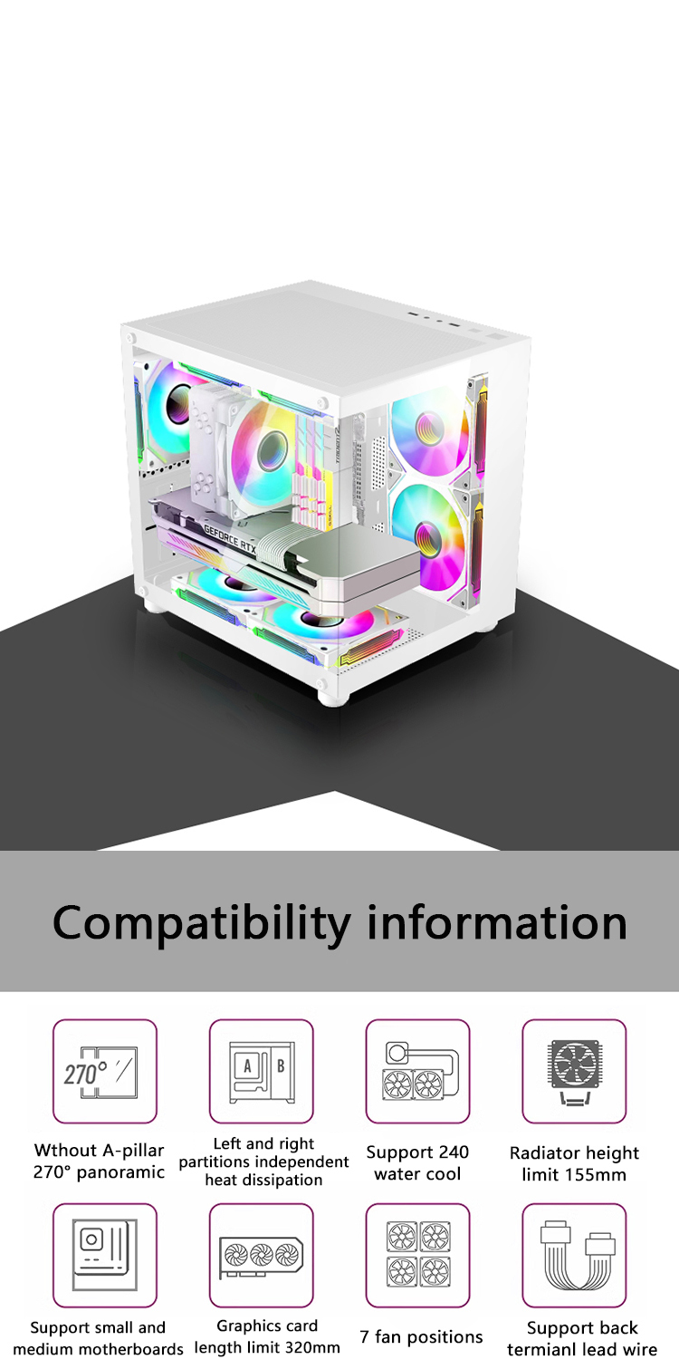 Manufacturer Custom White Micro ATX Computer Case Towers RGB Gamer PC Cabinet Chassis Desktop Casings Gaming PC Case