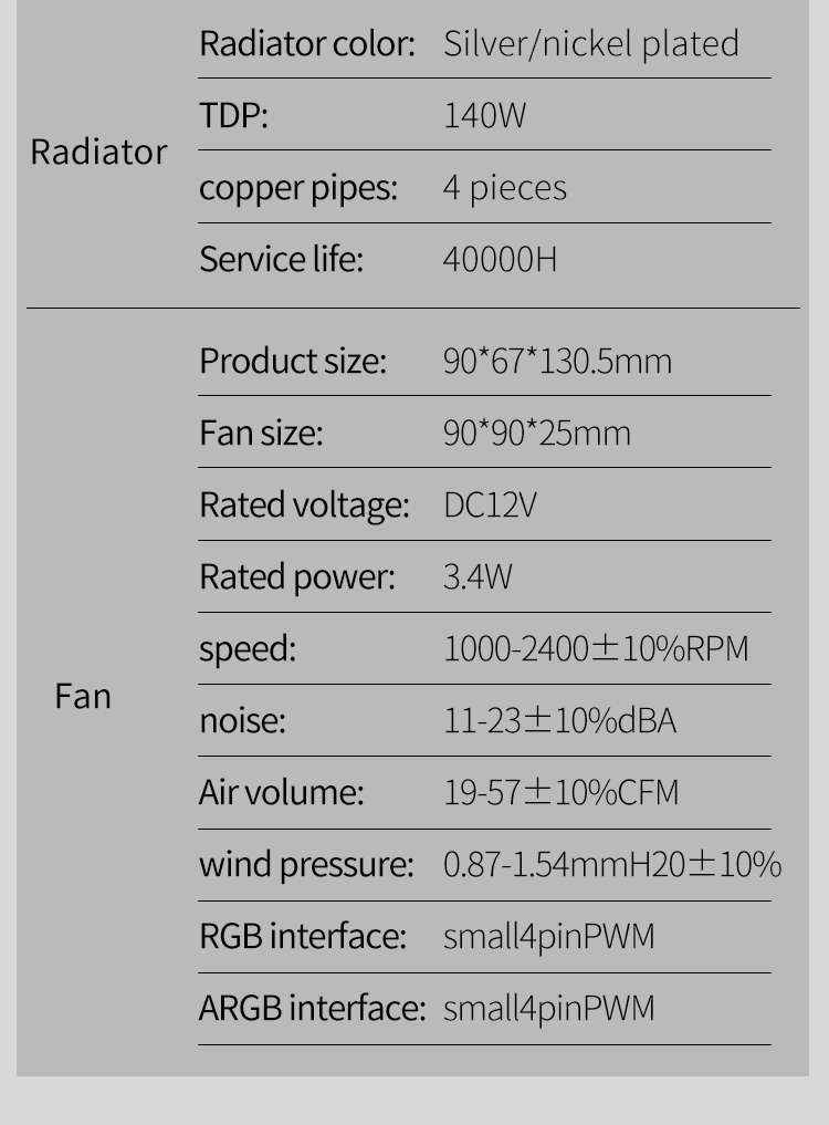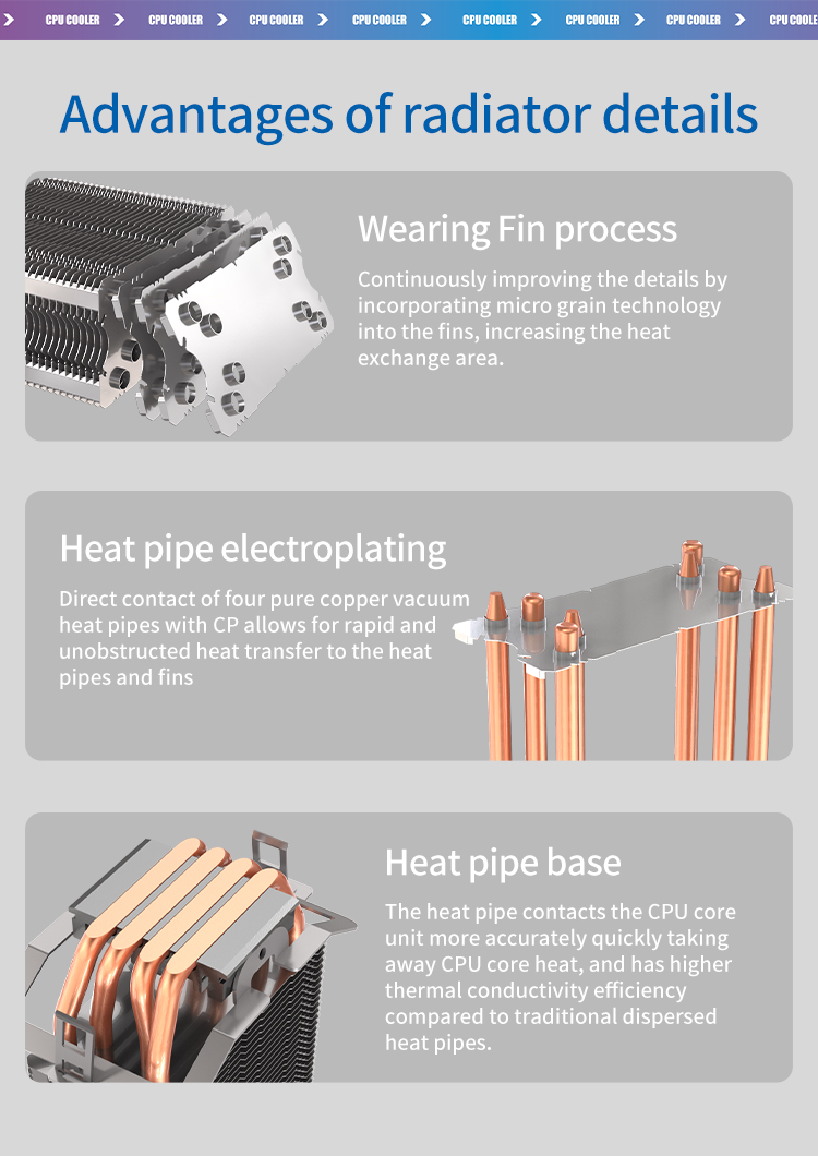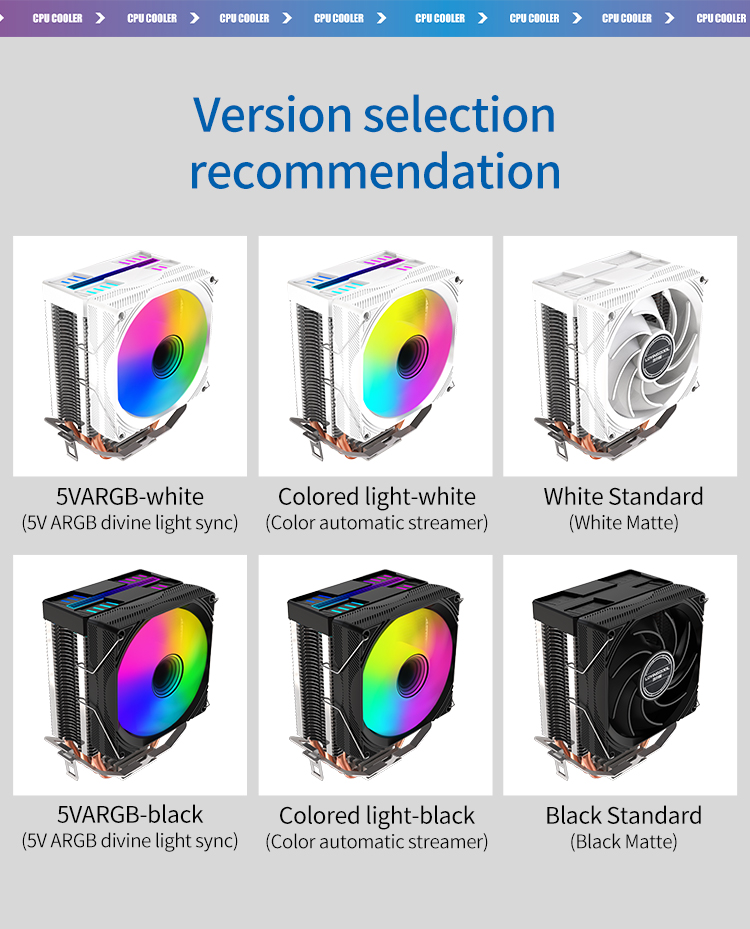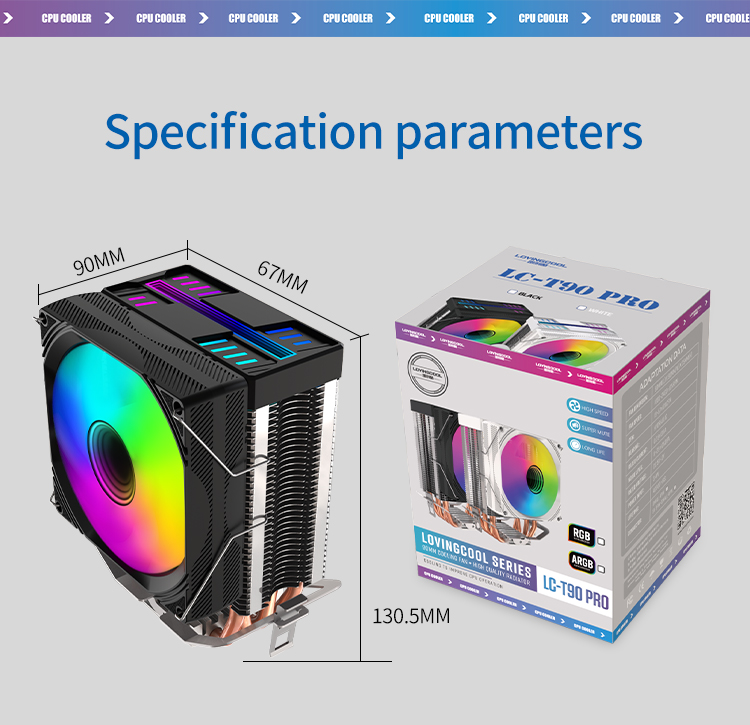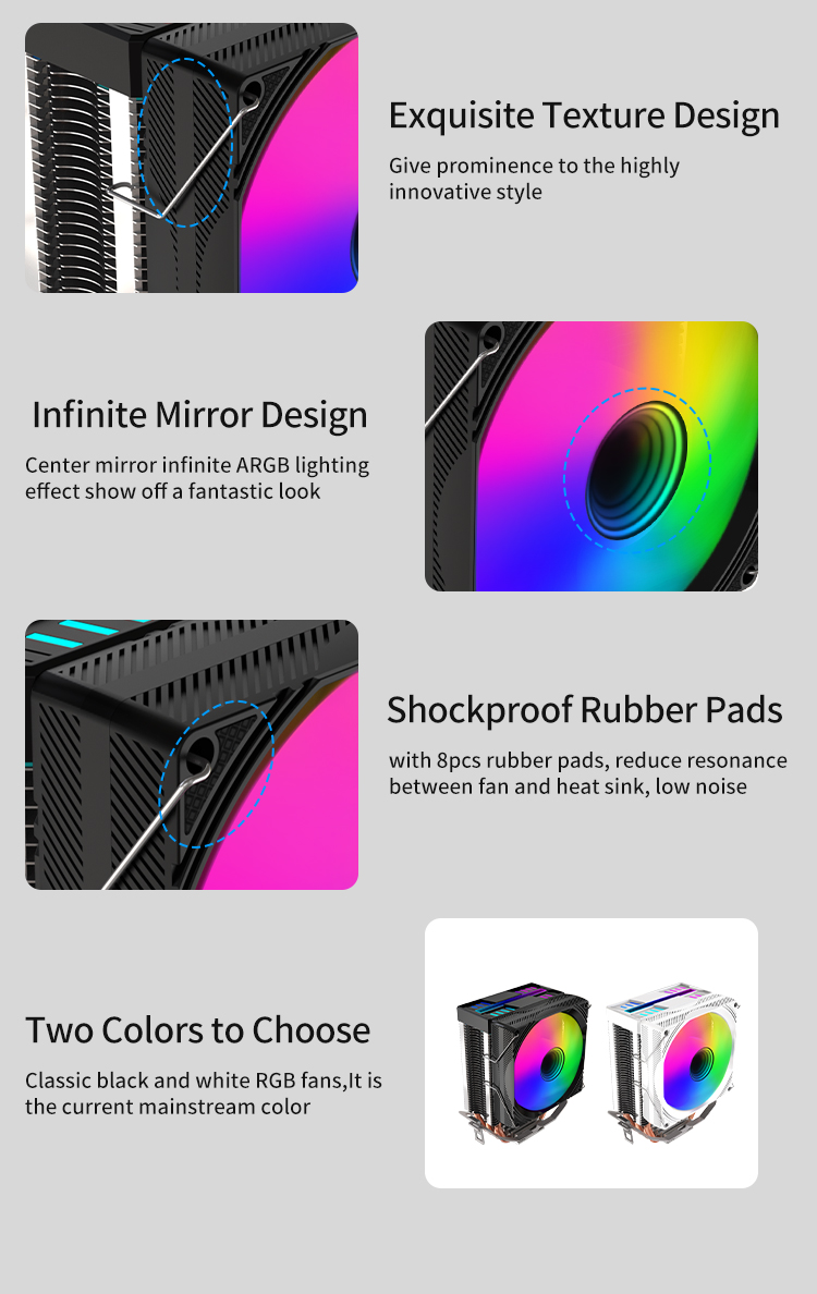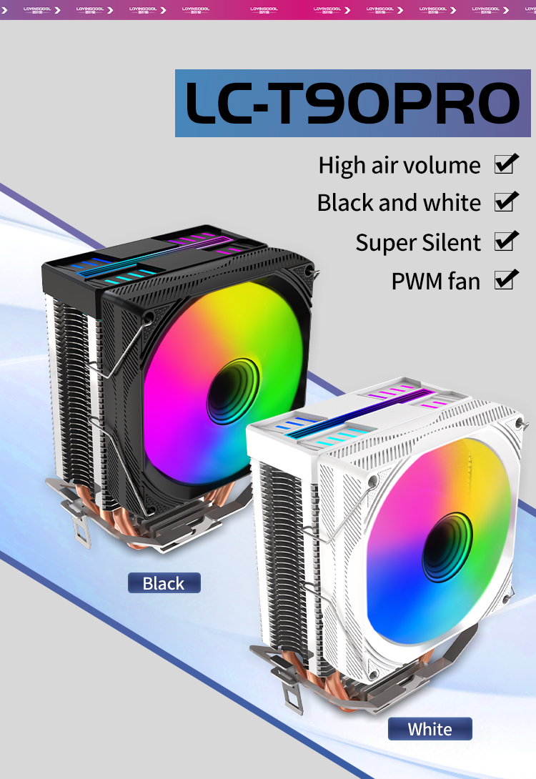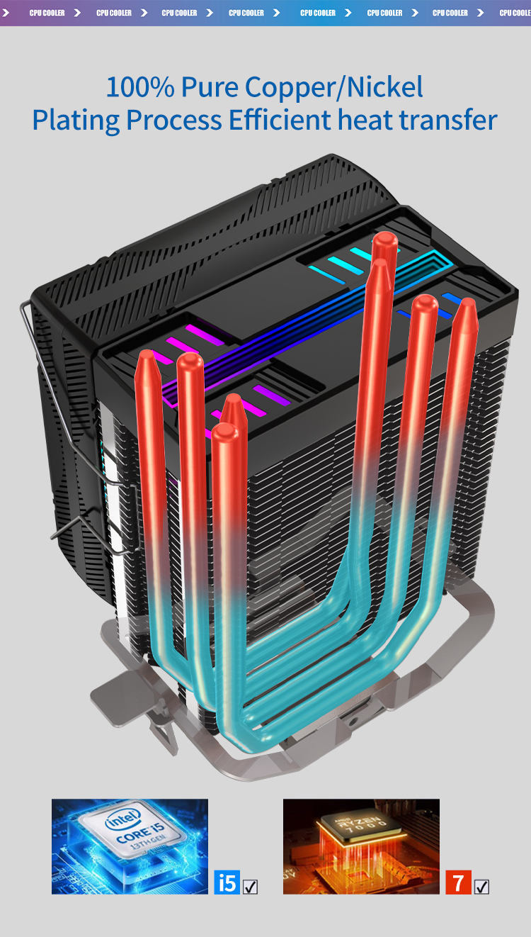 New Design RGB LED Cooling Fan Copper CPU Air Heatsink Cooler with 12V Rated Voltage Heat Radiator Fans CPU Cooling