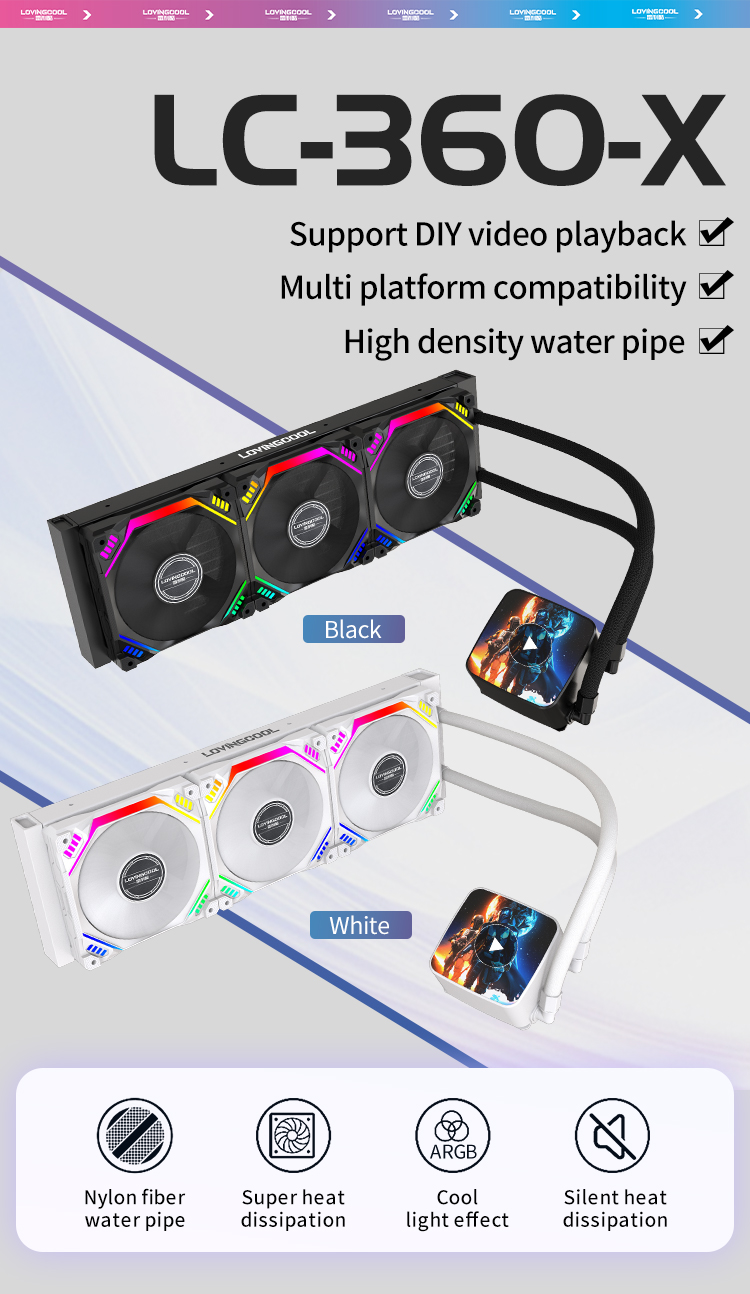 New Design Video Playback Water Pump 360mm Cooling Radiator PC Water Cooling Liquid CPU Cooler