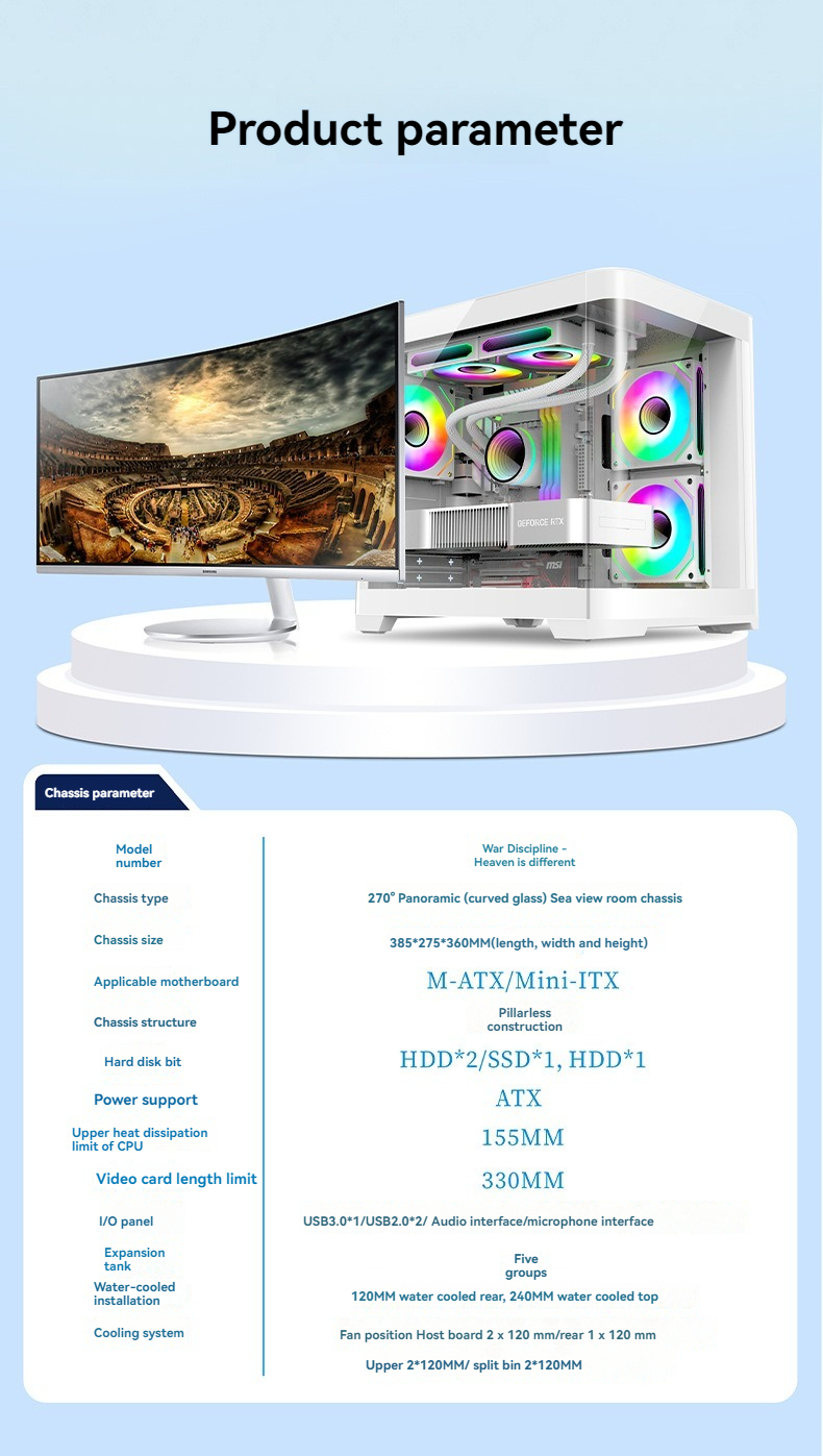 New Style ATX PC Tower Cabinet Case Tempered Curved Glass Full Tower Gamer Desktop Computer Case Cyborg PC Case