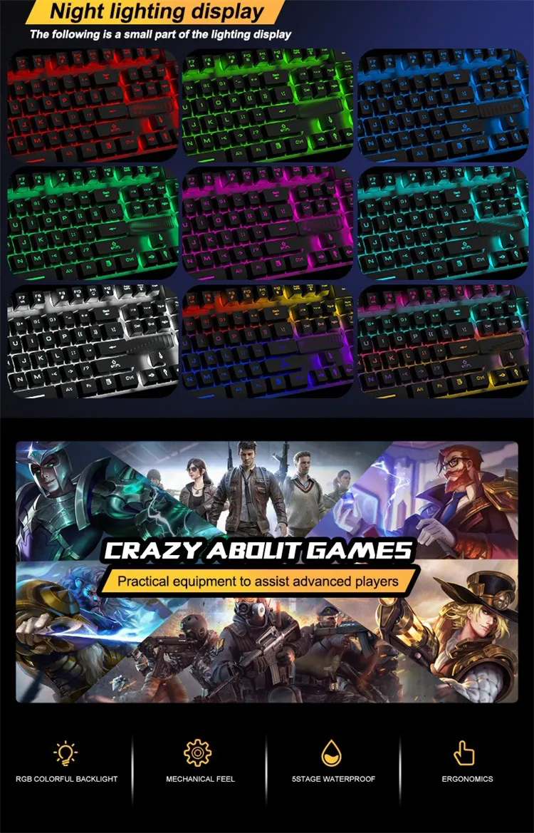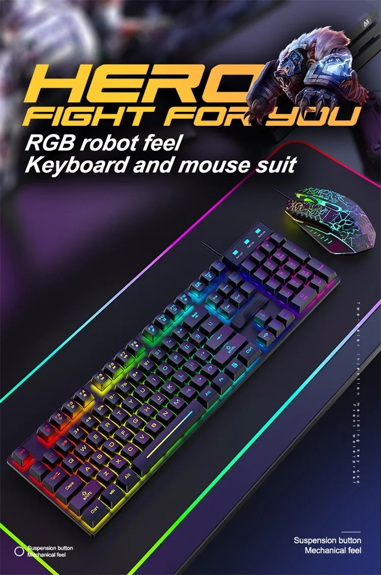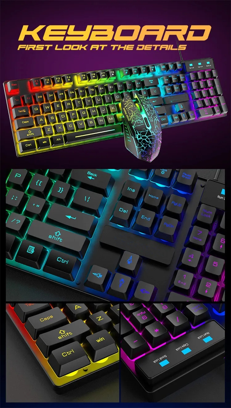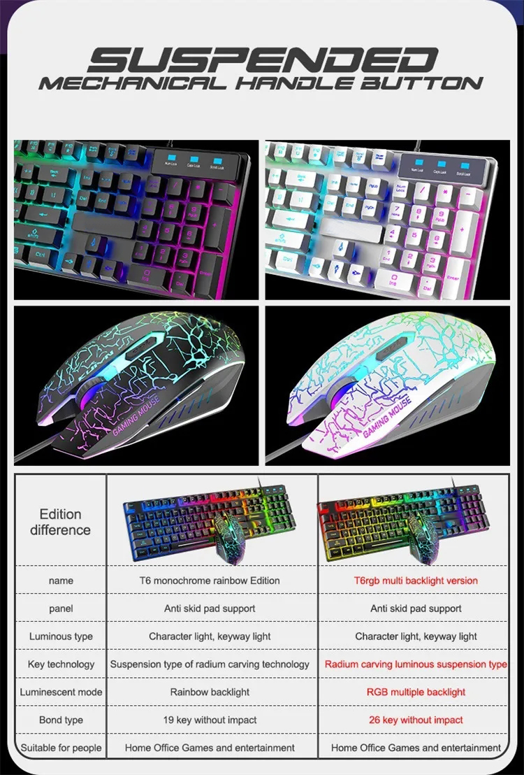 Newly Mechanical T6 Keyboard with USB Interface 108 Keys LED Light Gaming Keyboard