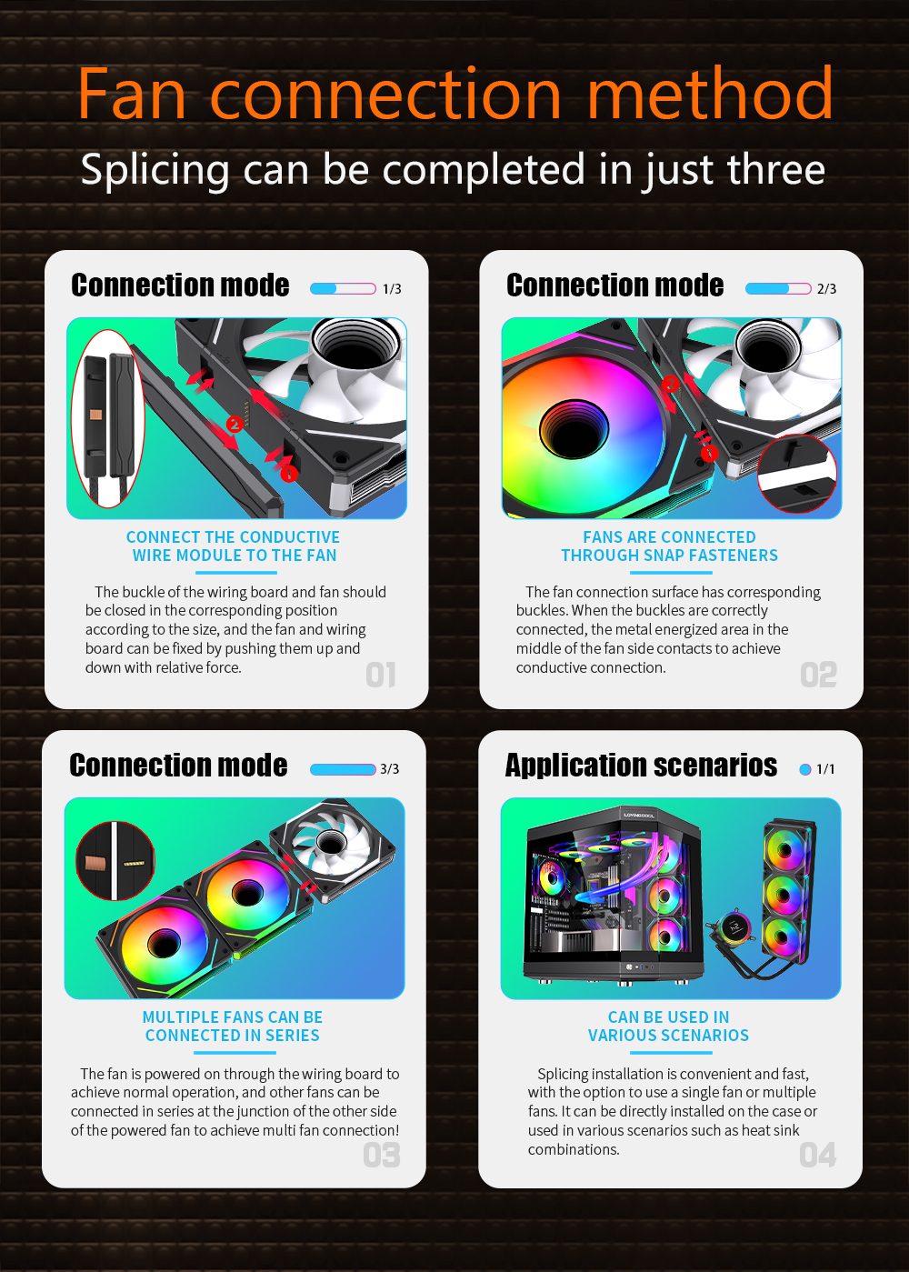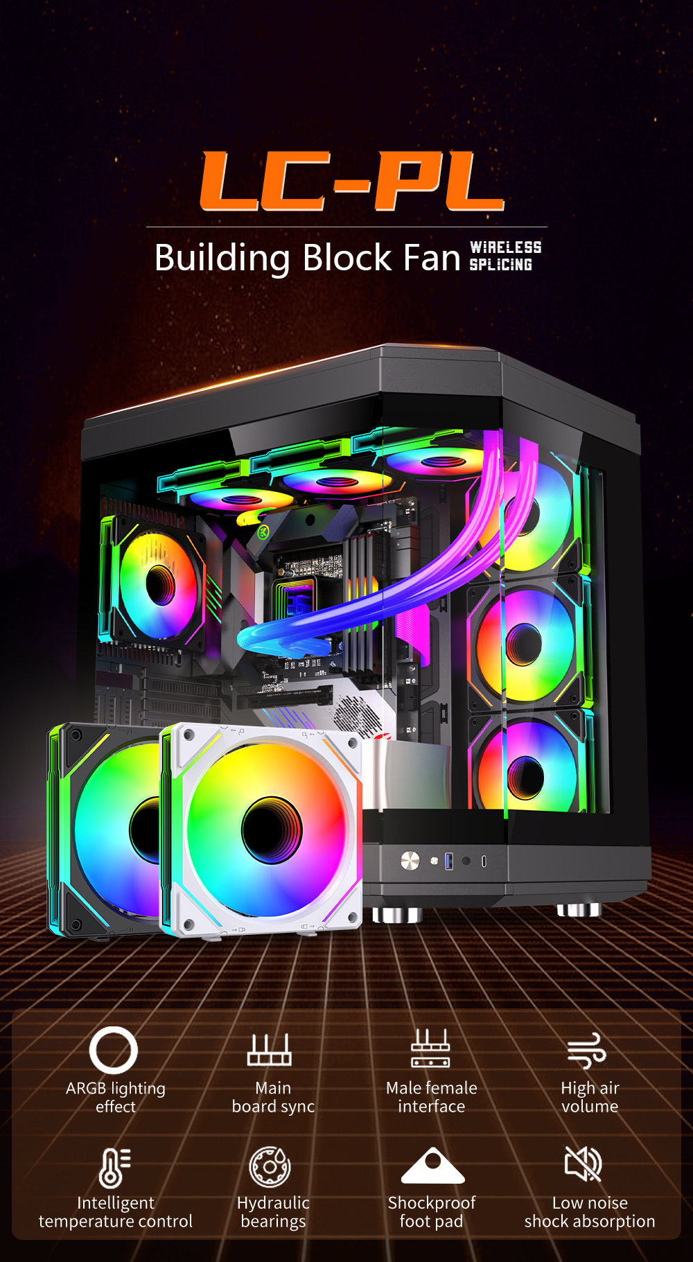 OEM Pc Rgb Building Block PC Fans ARGB 120mm CPU Case Fan Factory Supplier Wireless Splicing Computer Cooler Fan