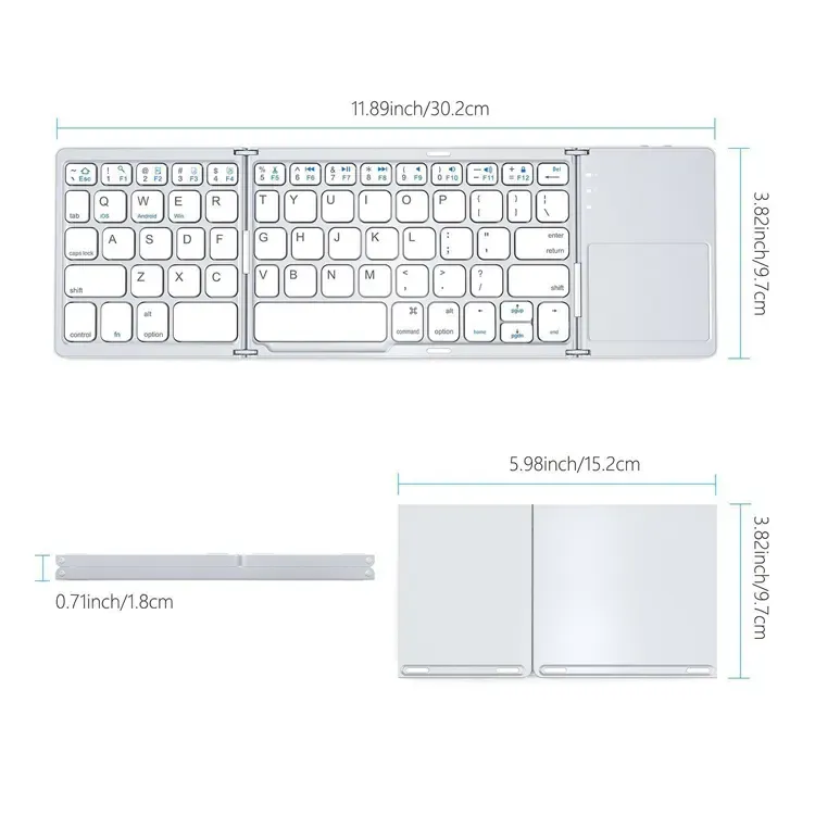 Slim Wireless Bluetooth Keyboard Ultra Thin Foldable Keyboard for Touchpad Tablet PC Portable Mini Folding Keyboard